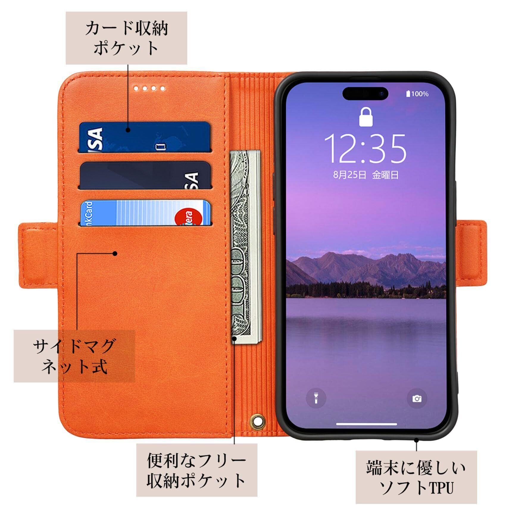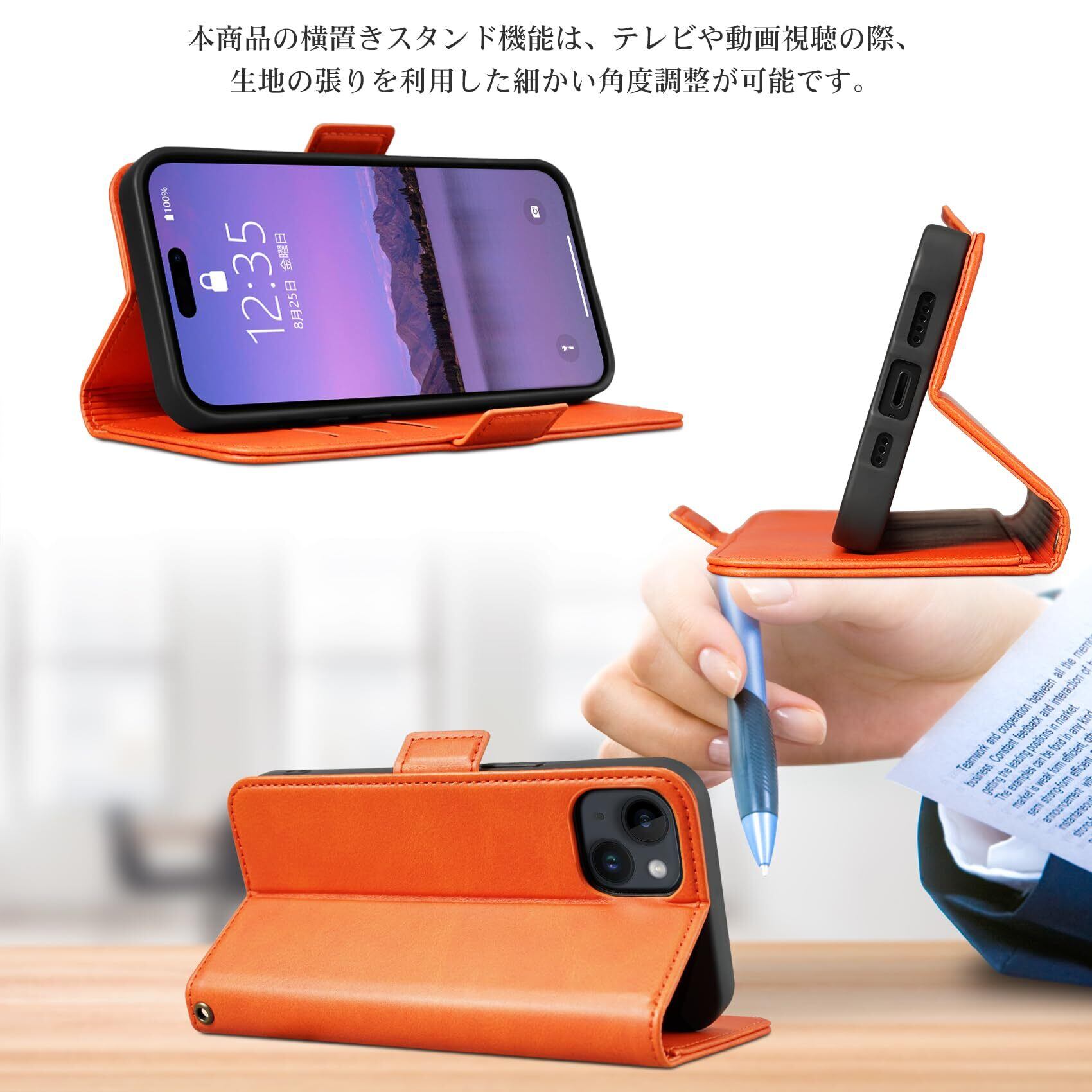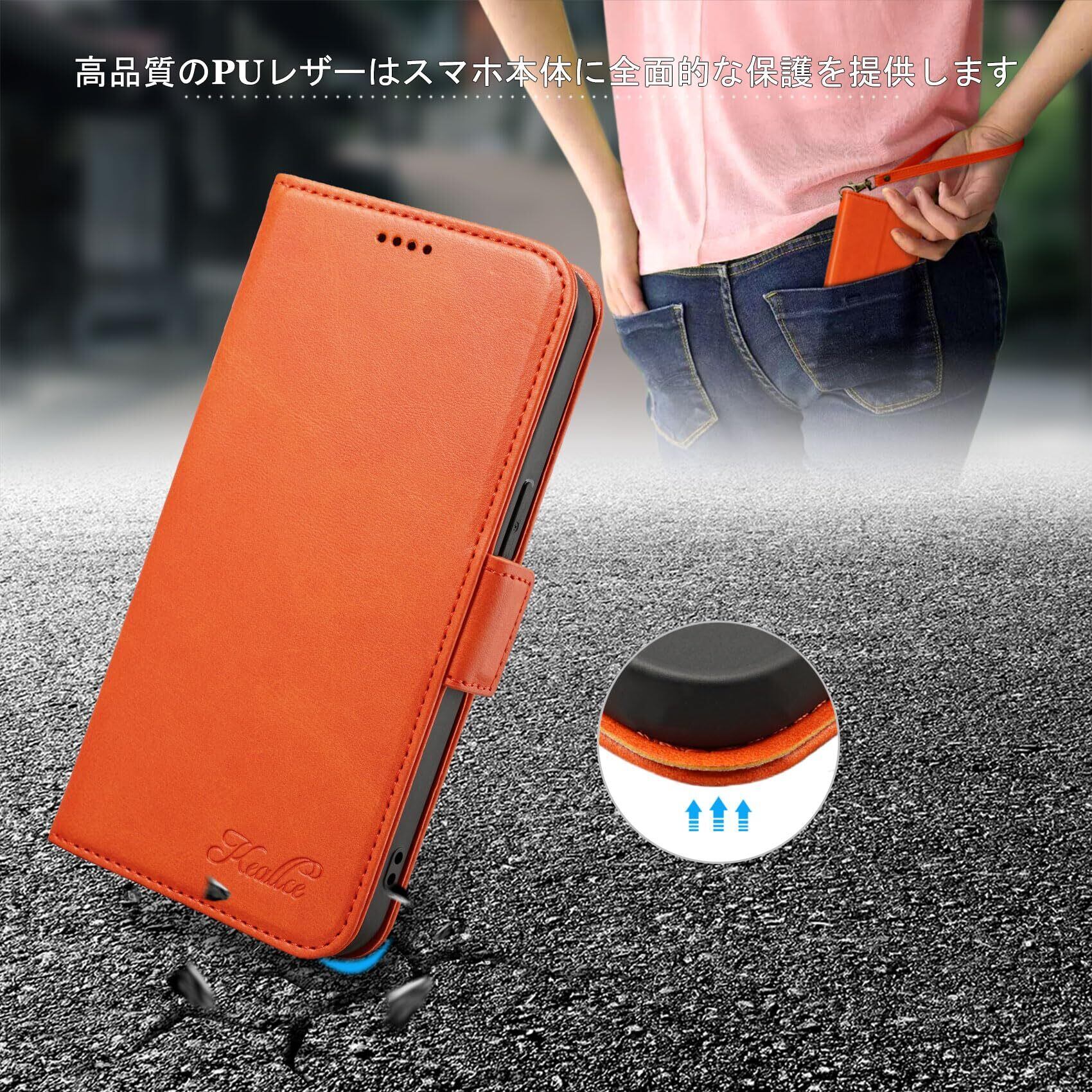 Keallce 対応 iPhone15 ケース 手帳型 iPhone 15 手帳型 ケース いphone15 ケース カバー アイフォン15 スマホケース アイホン15 スマホカバー ストラップ スタンド 財布型 カード収納 耐摩擦 耐衝撃 全面保護 プレゼント iPhone15 ケース 手帳型 6.1inch オレンジ | hananoki