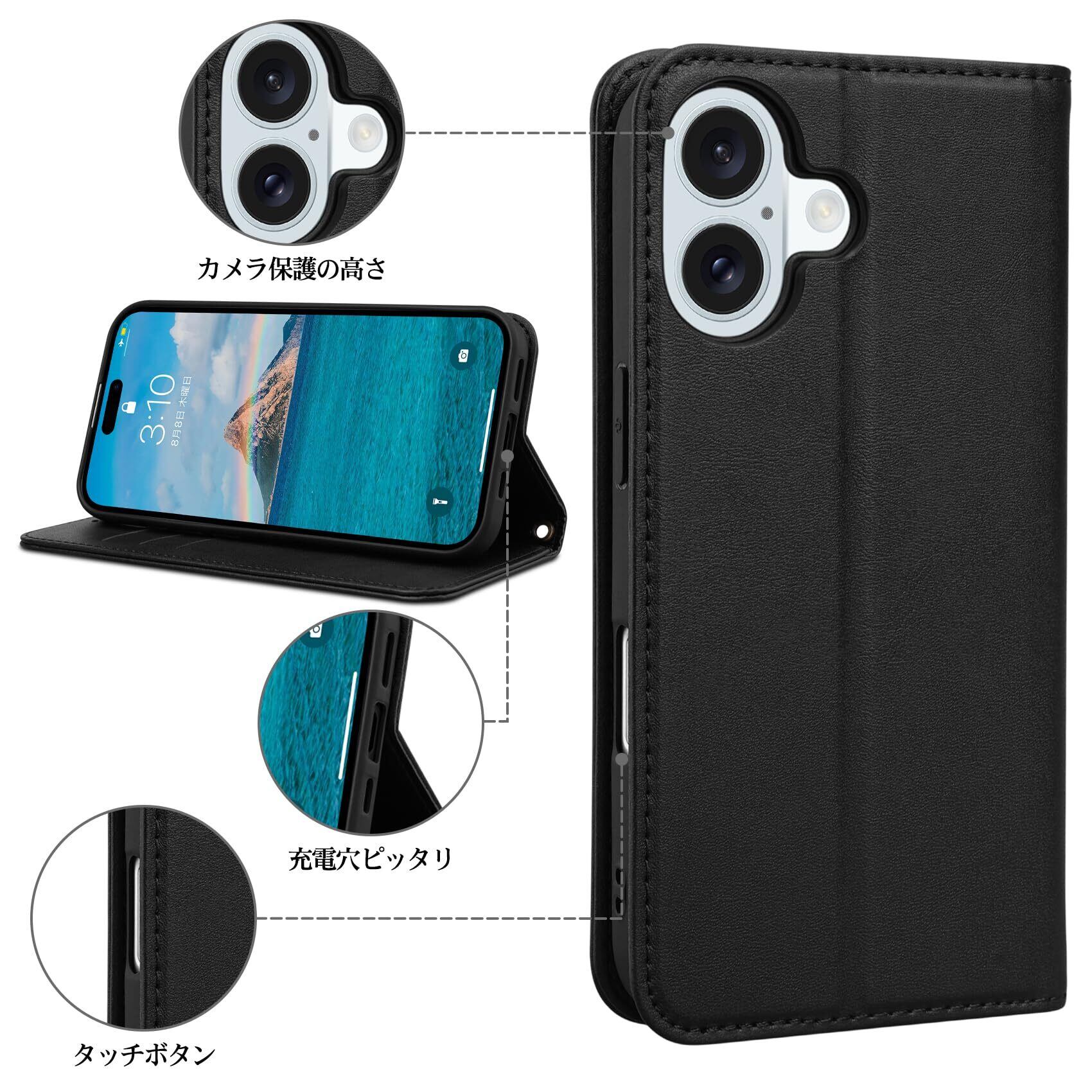 機種対応:6.1インチのiPhone 16 用 手帳型ケースに対応。このケースは実用的で見栄え、質感のある素材で肌触りがよく、柔軟性があります。簡潔だがシンプルではないディテールを現れています。ご注意:ディスプレイの環境によって、画像の色が実物と異なる場合がございます。 カラーや機種の選択には間違いがないよう、ご注文前によくお確かめください。