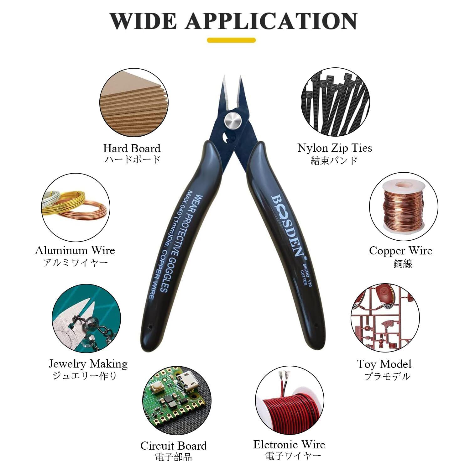 【幅広いシーンで活躍】軟鉄、銅線の処理、精密機器の組立、プラモデル、DIYなどで幅広く使えるニッパ。
