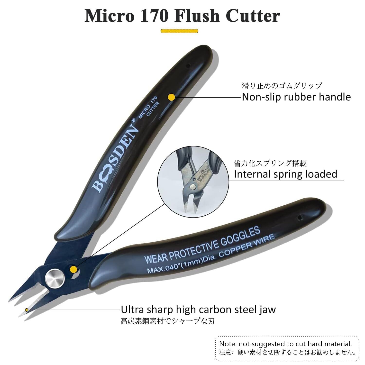 【ばね付け】精密ニッパーはばね付けのデザインによって、より弱い力で連続切断できます。グリップは滑り止めの仕上げで、作業には便利です。