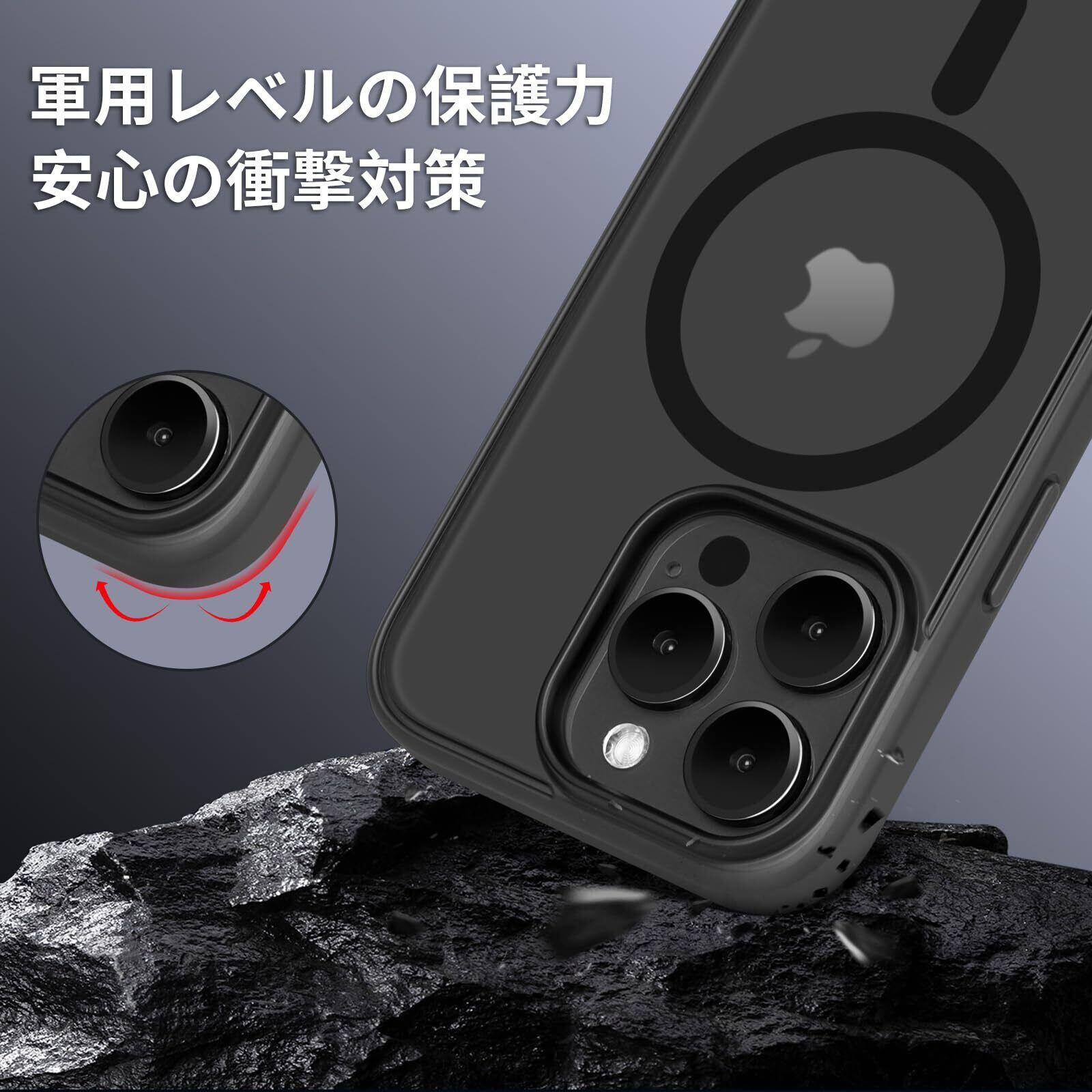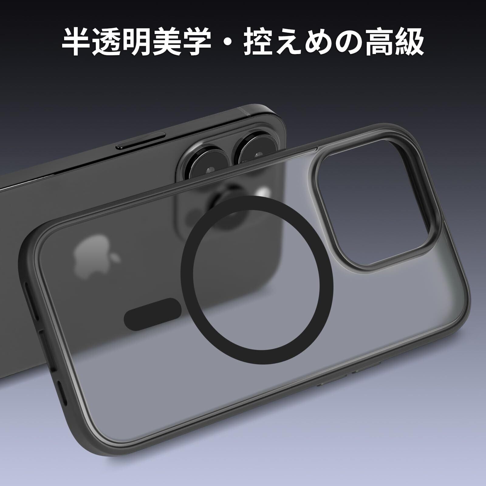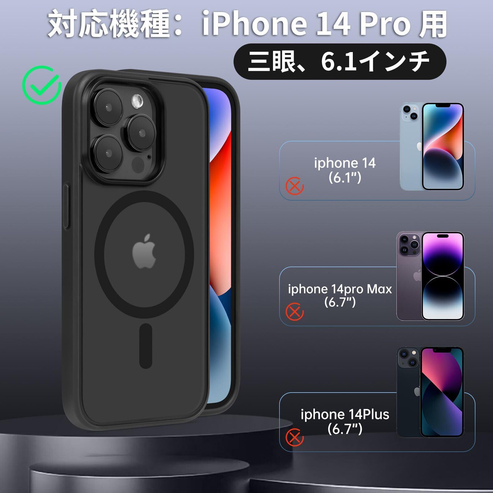 iPhone 14 Pro 用ケース MagSafe対応 ワイヤレス充電 2023新型 半透明 黄変防止 アイフォン14Pro用ケース 滑り止め 指紋防止 耐久性 マット感 耐衝撃性 6.1インチカバー (ブラック)