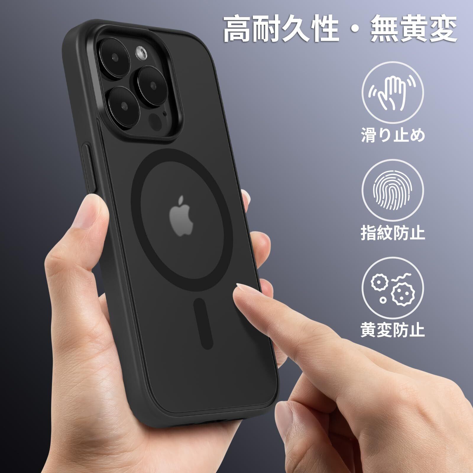 iPhone 14 Pro 用ケース MagSafe対応 ワイヤレス充電 2023新型 半透明 黄変防止 アイフォン14Pro用ケース 滑り止め 指紋防止 耐久性 マット感 耐衝撃性 6.1インチカバー (ブラック) | hananoki