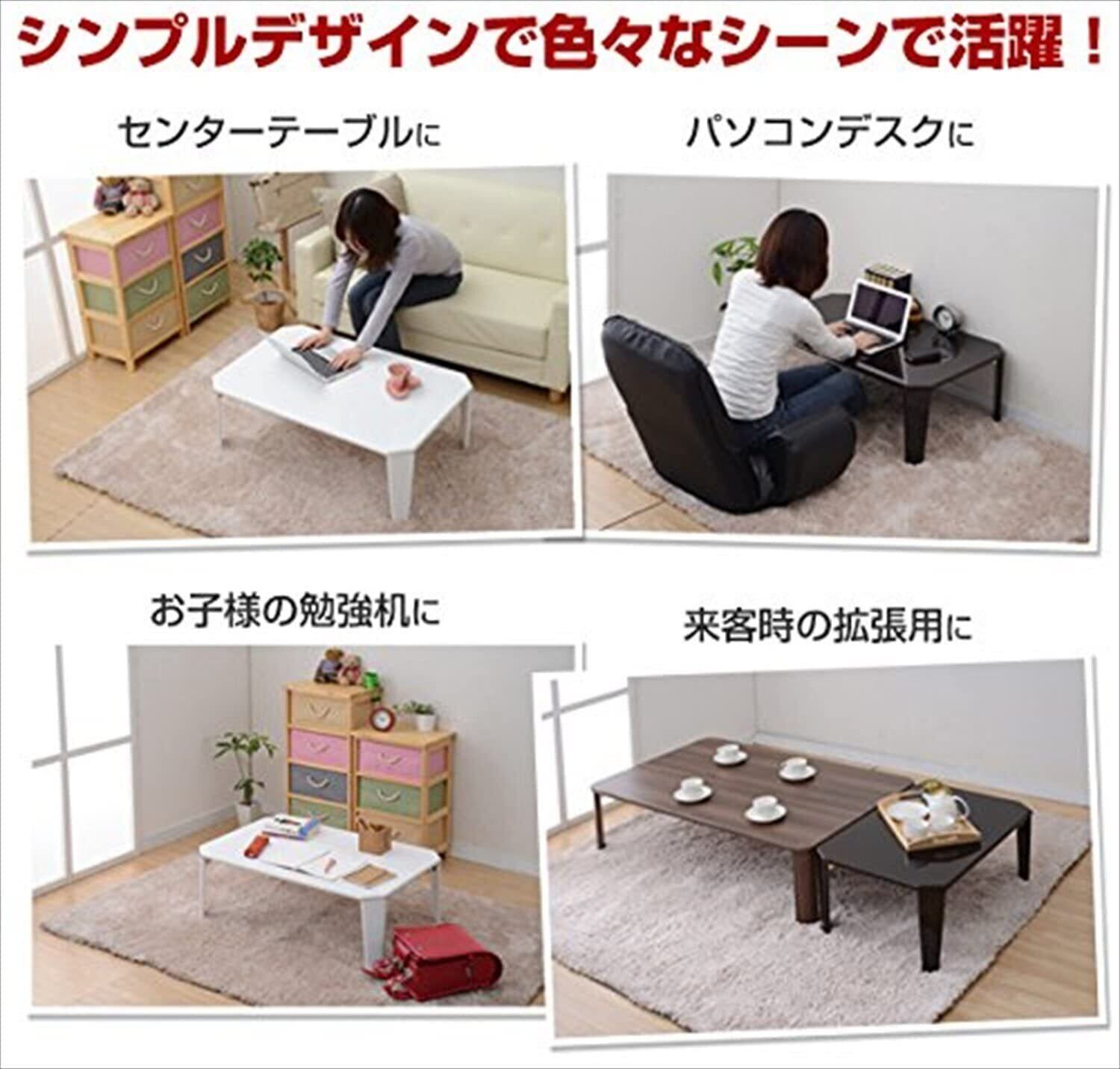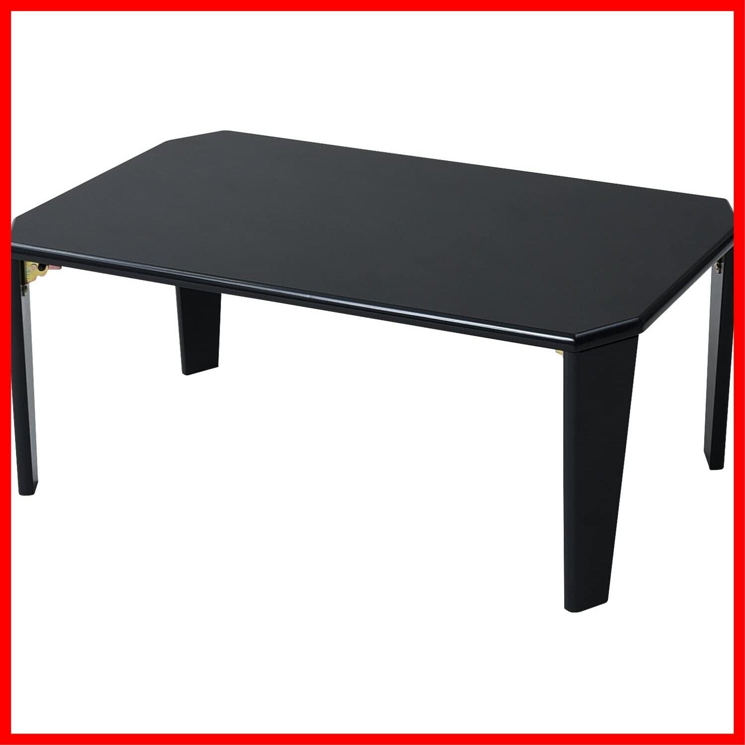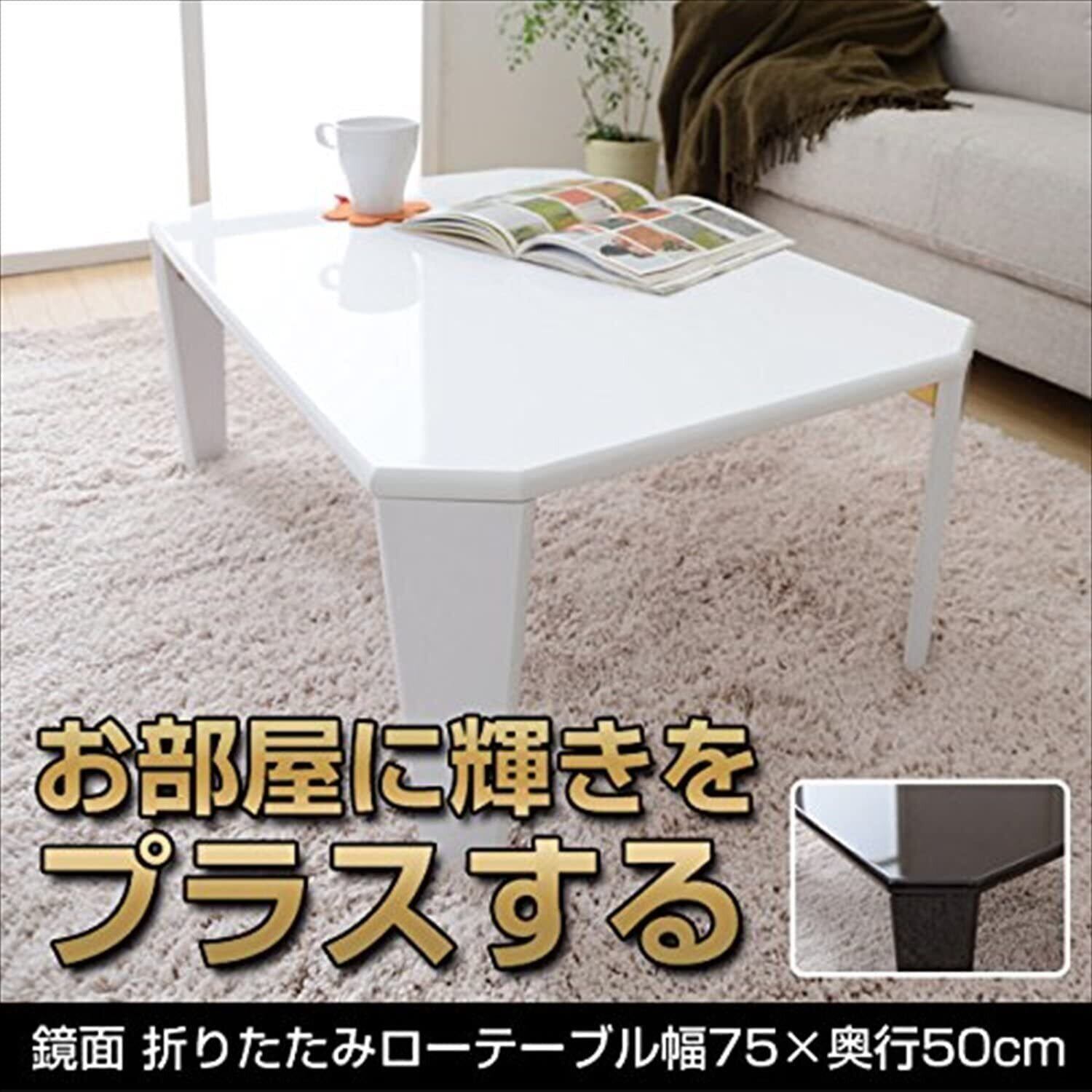 山善(YAMAZEN) ローテーブル 折りたたみ 幅75×奥行50×高さ32.5cm 鏡面 コンパクト収納 角が丸い テーブル 折れ脚 完成品 ブラック TWL-7550(BK) | hananoki