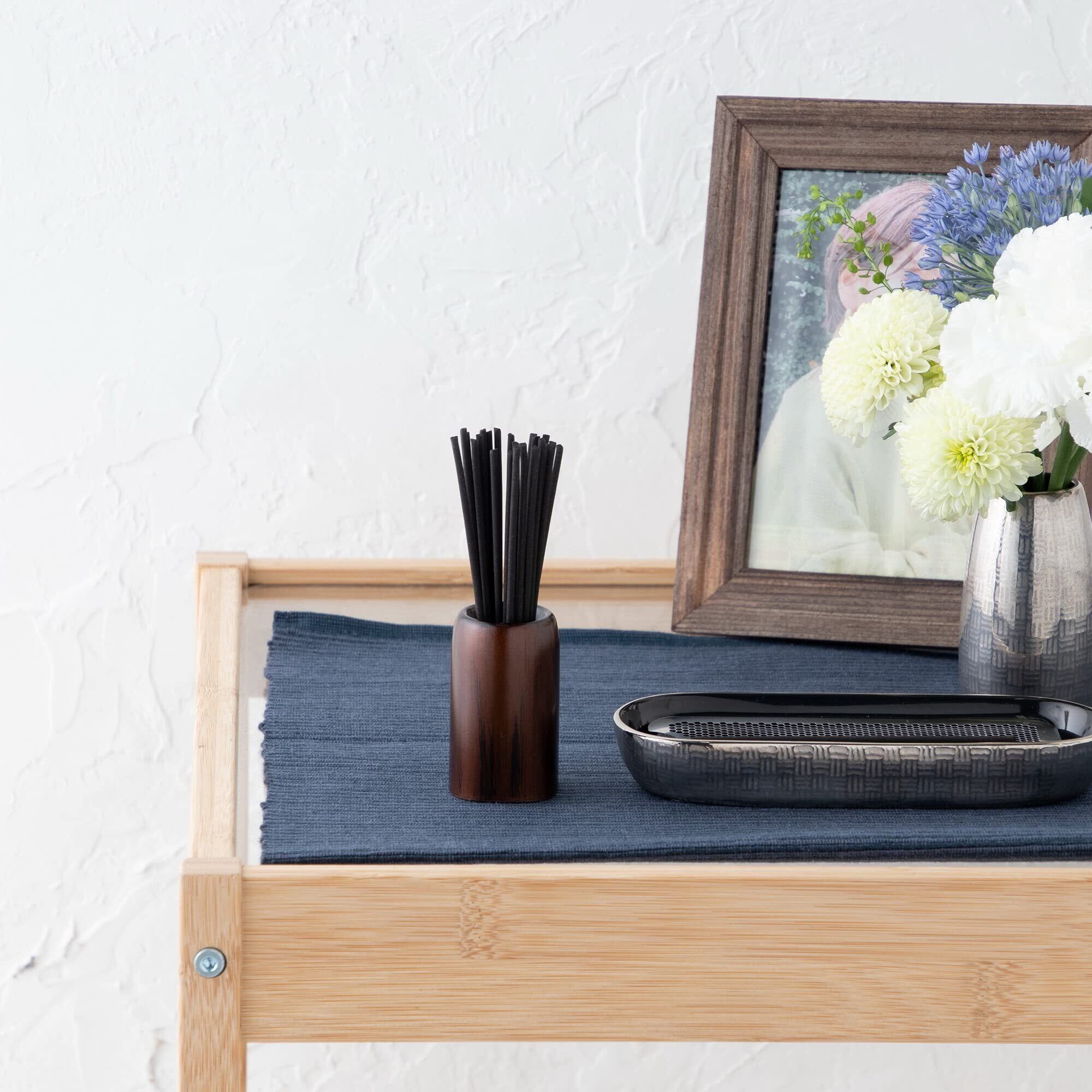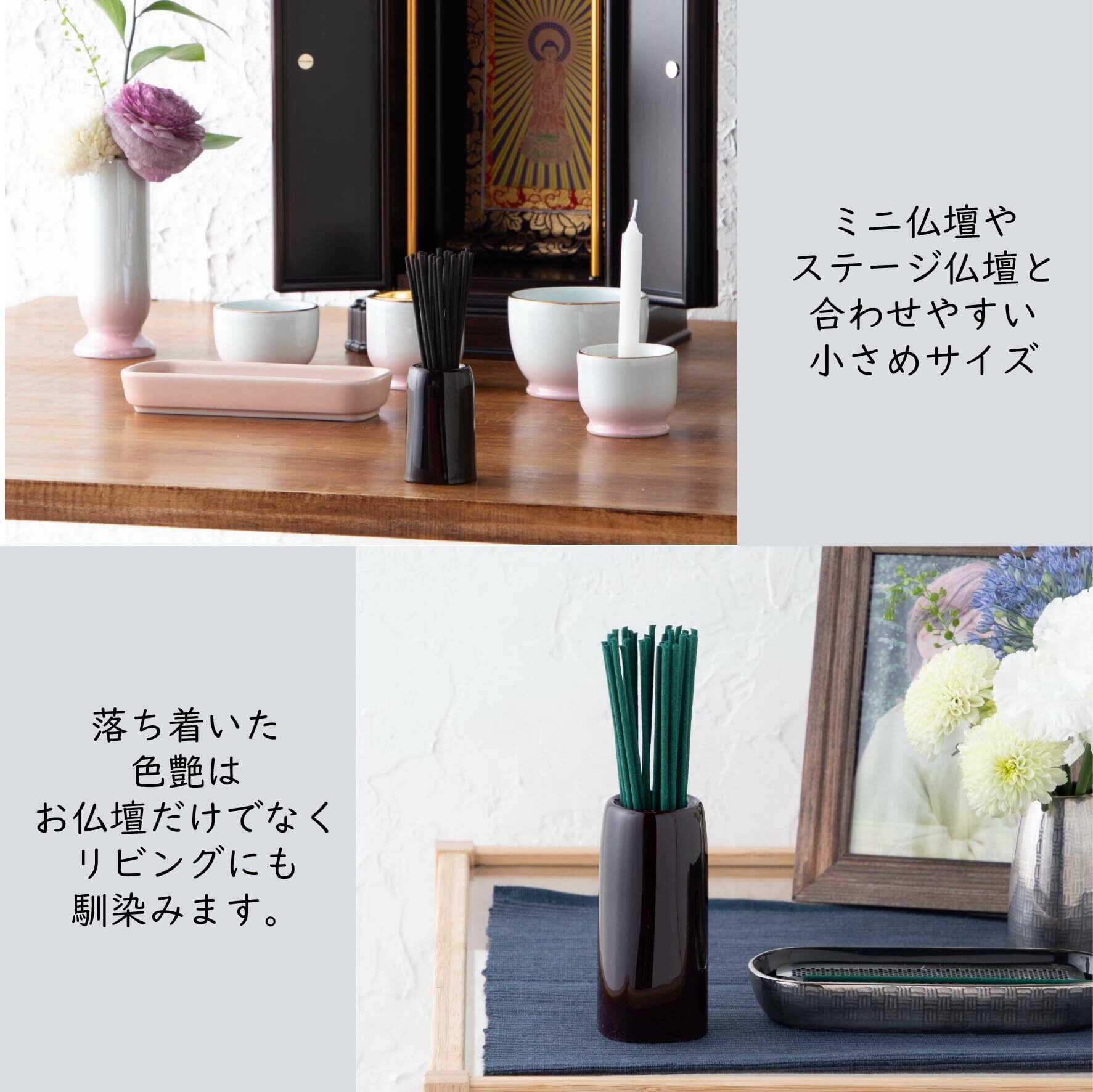 サイズが2種類あるため、使いたいお香に応じてサイズをお選びいただけます。コンパクトかつ落ち着いたシンプルなデザイン、色のため、リビングやミニ仏壇、ステージ仏壇などはもちろん、ヨガや瞑想の時に使うお香を、インセンスホルダーの近くにまとめておくなどの用途にもご使用いただけます。