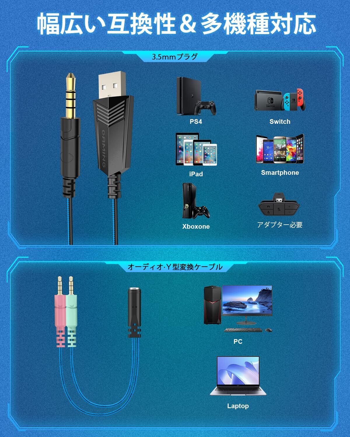 【優れた互換性】「アメリカで人気を誇るBENGOOヘッドセット!未 体験の方もぜひお試しください!」セットアップが簡単なため、購入 後すぐにゲームや音楽鑑賞、チャット等にお使い頂けます。ノートパソ コンの他、PC、PS5/4、Xbox One、switch、スマホ等でも使用できます。ご注意:3.5mm Y型アダプターは別売りです。旧型Xbox Oneに接続する場合は別途Microsoft Adapterが必要となります。