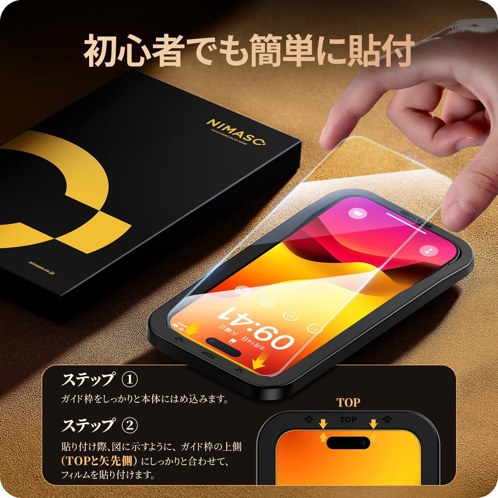 NIMASO ガラスフィルム iPhone15Pro用 強化ガラス 保護フィルム ガイド枠付き 2枚セット アイフォン15プロ対応 NSP23H743