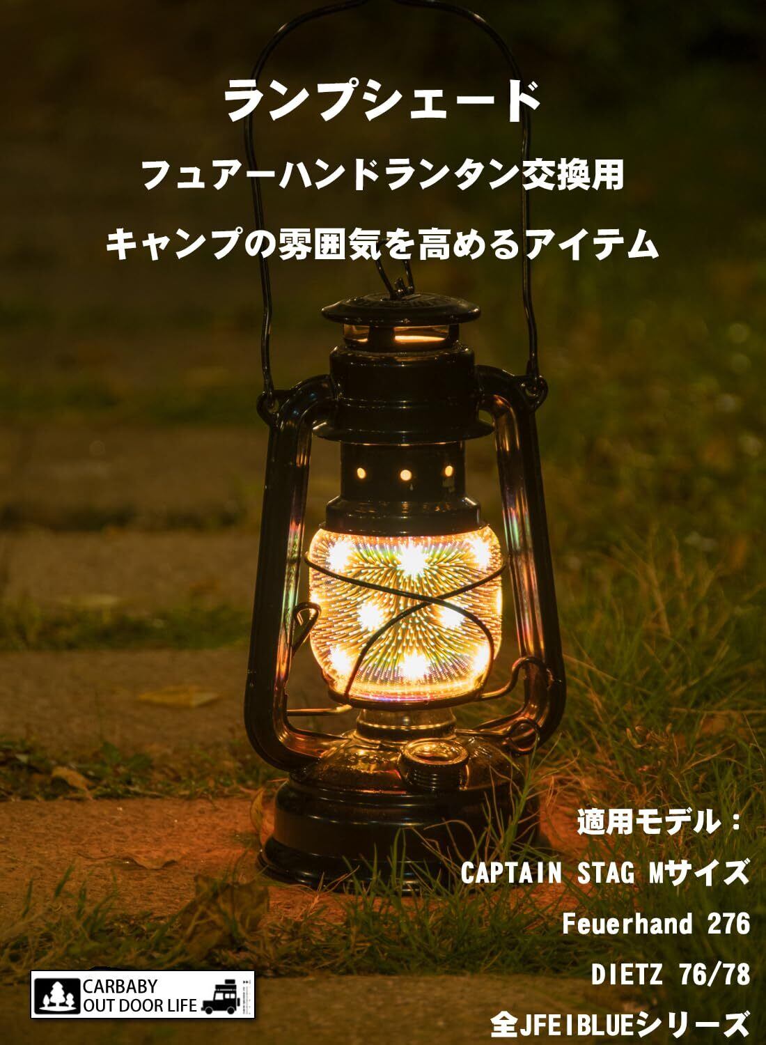 このランプシェードは最初Feuerhand フュアーハンド ランプ用に特別設計されたんですが、他にDIETZ 76/78、全JFEIBLUEシリーズ及びCAPTAIN STAG Mサイズでも適用できます。ランプ本体は含まれていません。