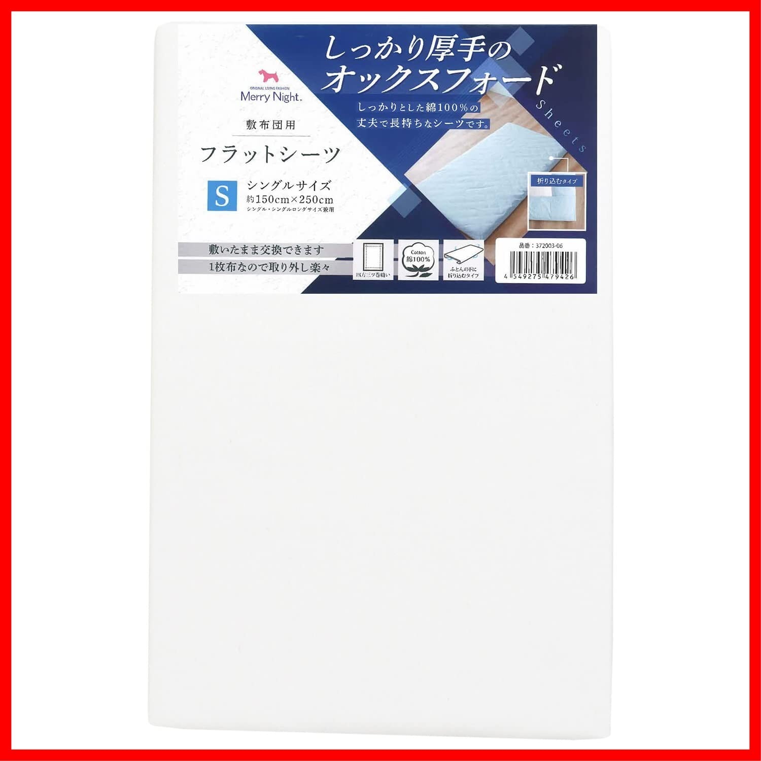 綿100%で吸水性も良いオックスフォード生地を使用したフラットシーツ。厚手生地が水分もしっかり吸収。丈夫で長持ちなので洗濯頻度が多くてもOK、オールシーズン使用できます。