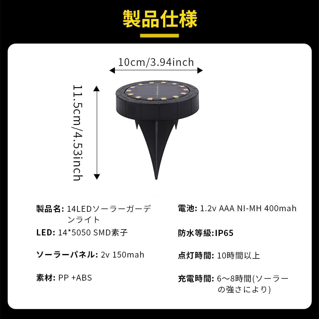 ソーラーガーデンライト ソーラーライト 屋外 防水 地中埋込型ライト 14LEDパス照明 デッキ・パティオ・歩道・プール用 (ウォーム・ホワイト) (ホワイト8個セット)