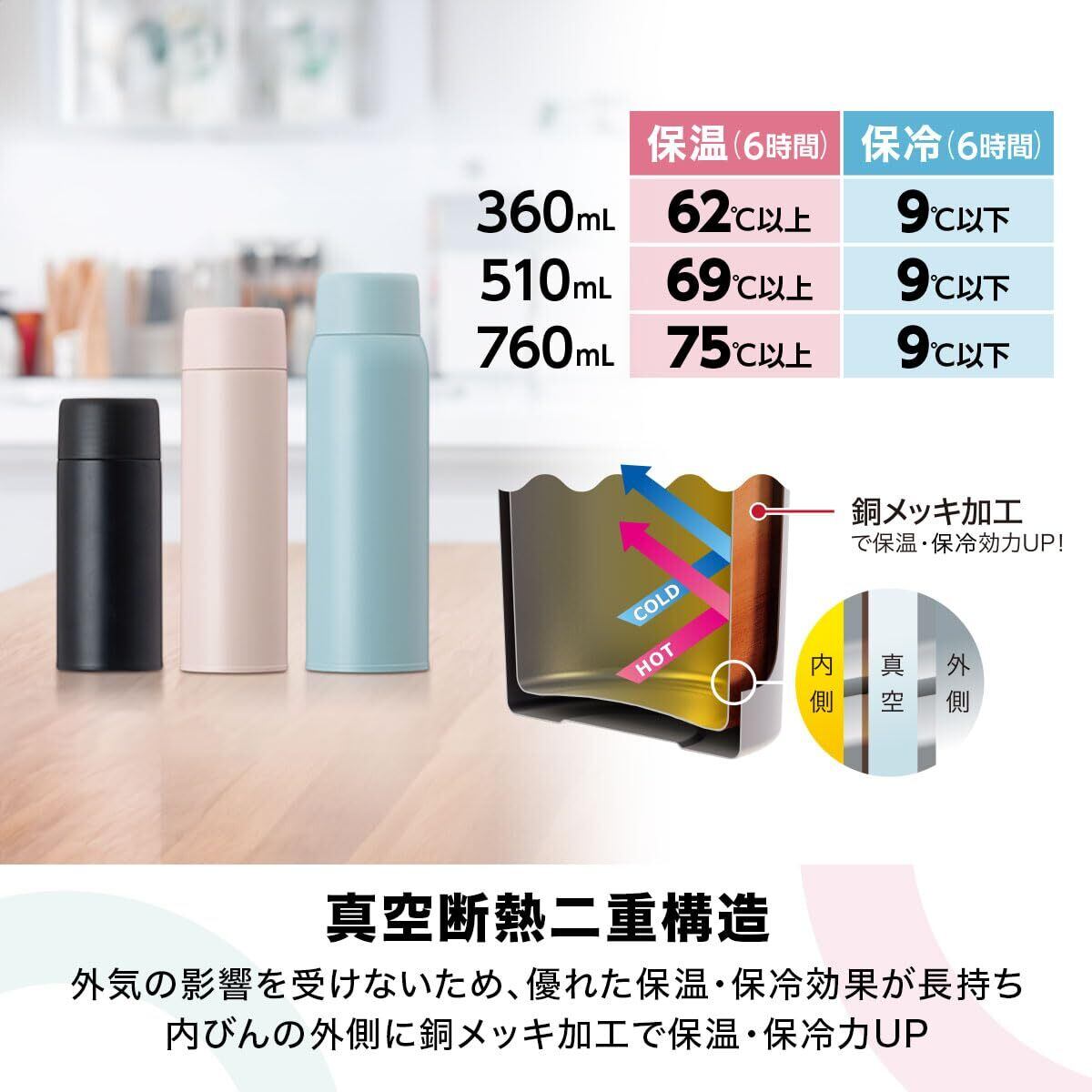 【保温効力】62℃以上(6時間)