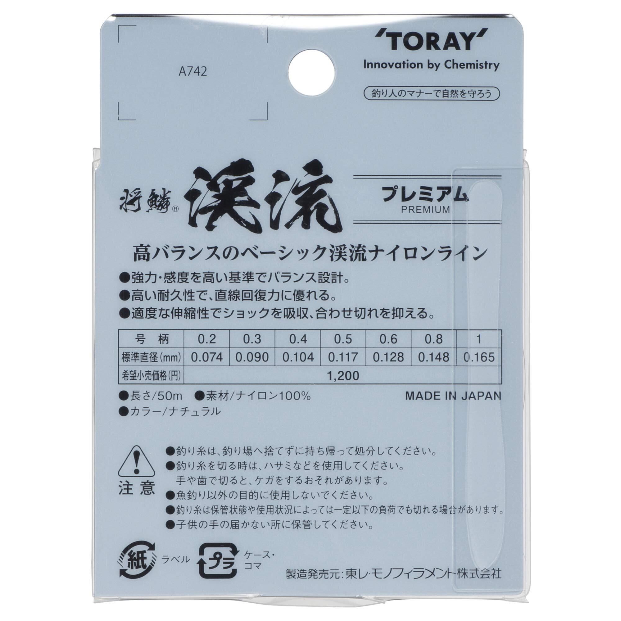 TORAY/東レ将鱗 渓流 プレミアム■長さ:50m巻■カラー:ナチュラル強力・感度を高い基準でバランス設計。高い耐久性で、直線回復力に優れる。適度な伸縮性でショックを吸収、合わせ切れを抑える。