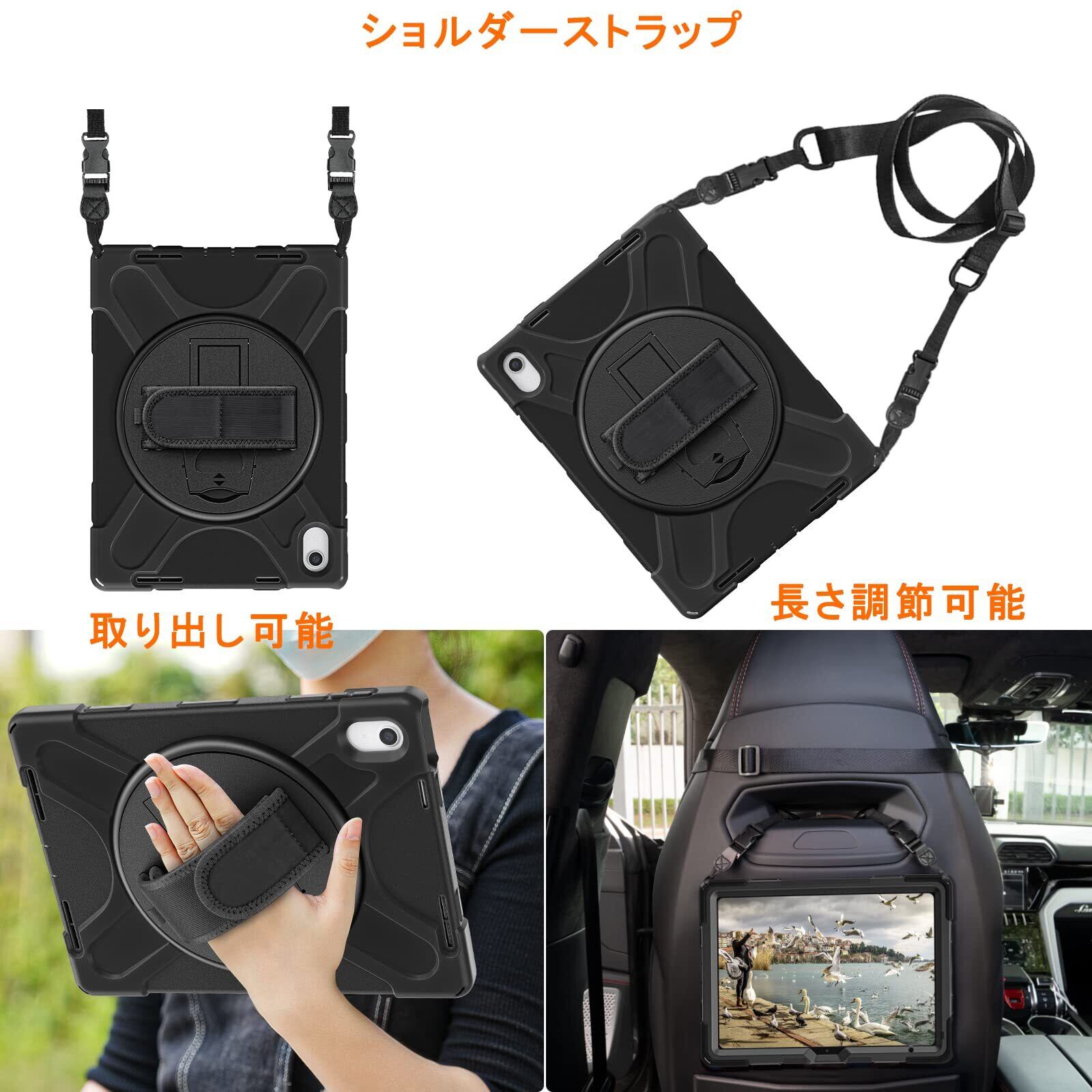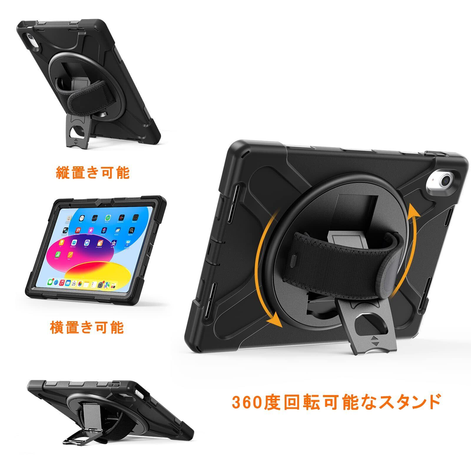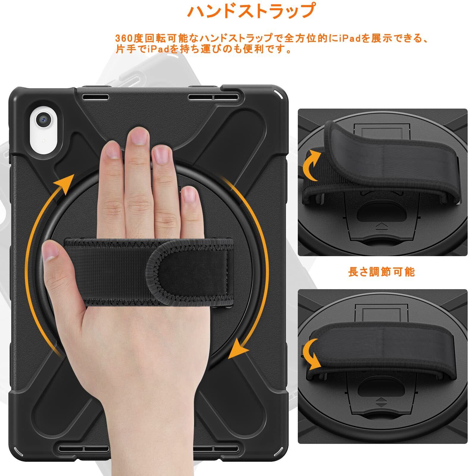 Herize iPad 11世代/10世代 ケース 10.9インチ 2025/2022 発売 保護ファイル付き ハンドストラップ ショルダーストラップ付き 360度回転可能なスタンドで横置きと縦置き可能 ペンホルダー内蔵 耐衝撃 iPad 第10世代 11th/10th ケース,ブラック