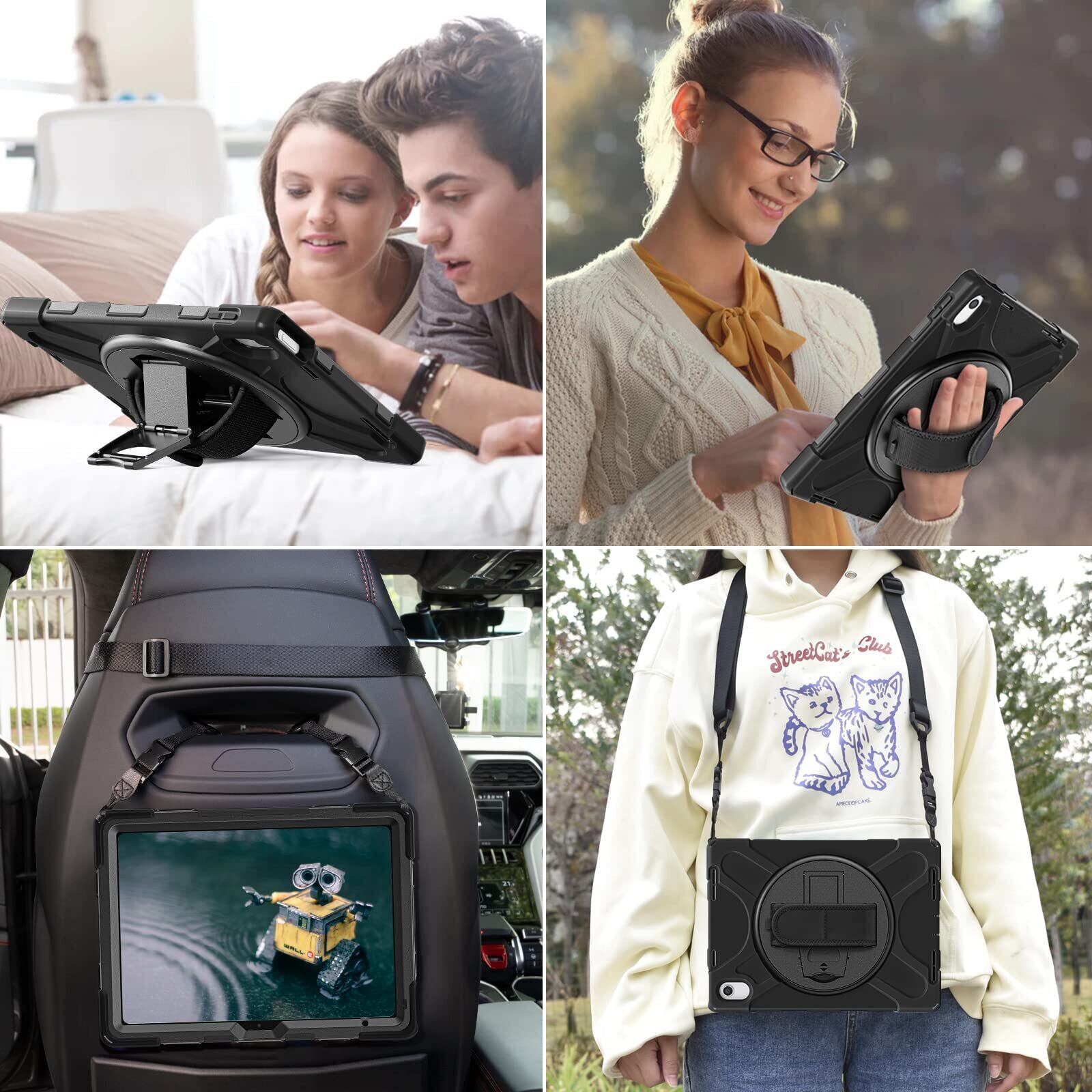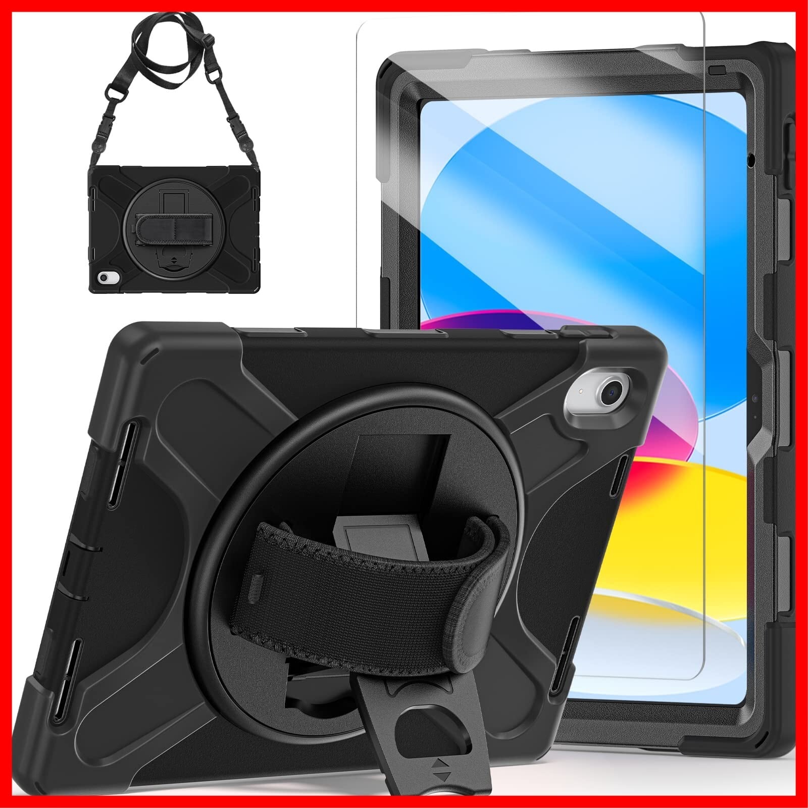 Herize iPad 11世代/10世代 ケース 10.9インチ 2025/2022 発売 保護ファイル付き ハンドストラップ ショルダーストラップ付き 360度回転可能なスタンドで横置きと縦置き可能 ペンホルダー内蔵 耐衝撃 iPad 第10世代 11th/10th ケース,ブラック | hananoki