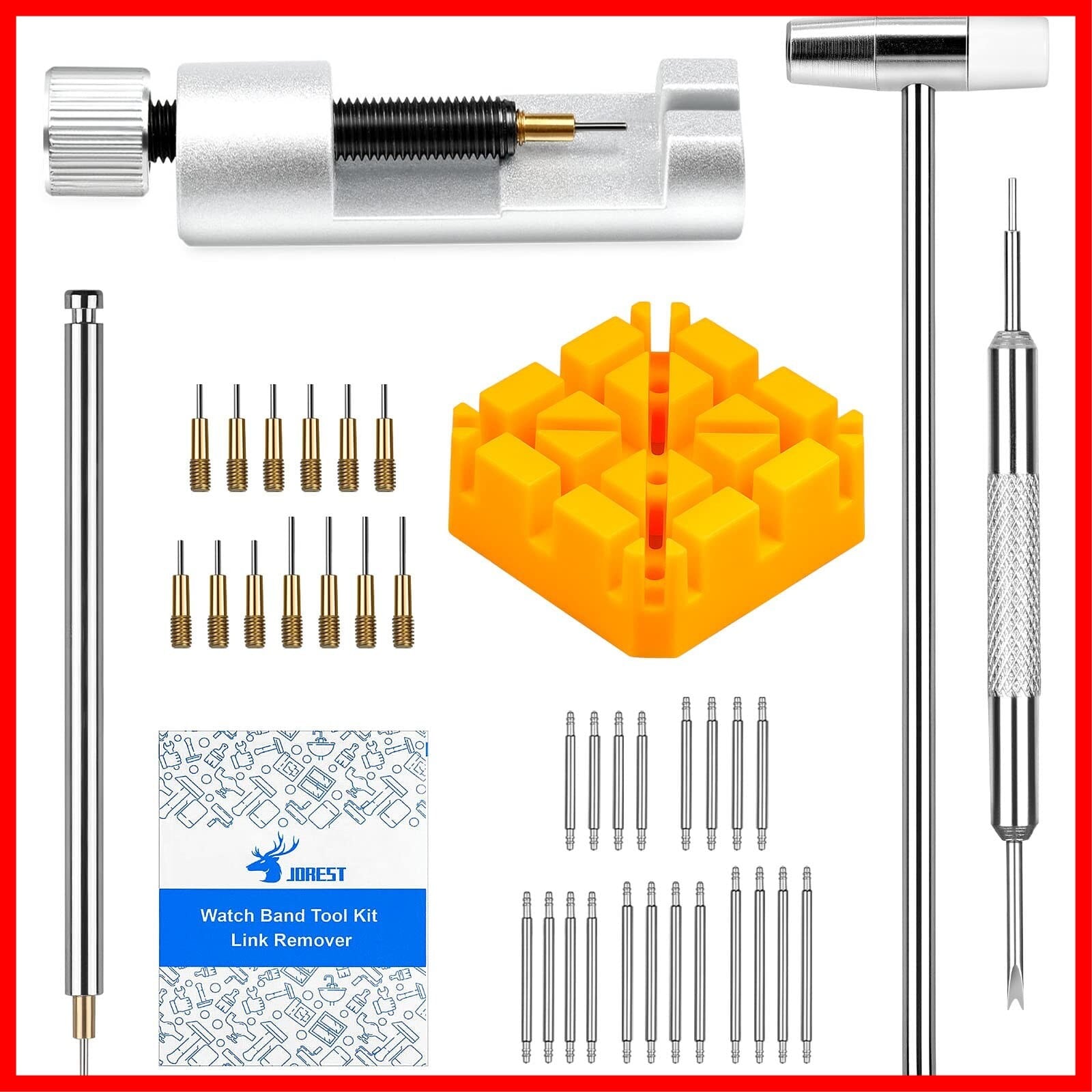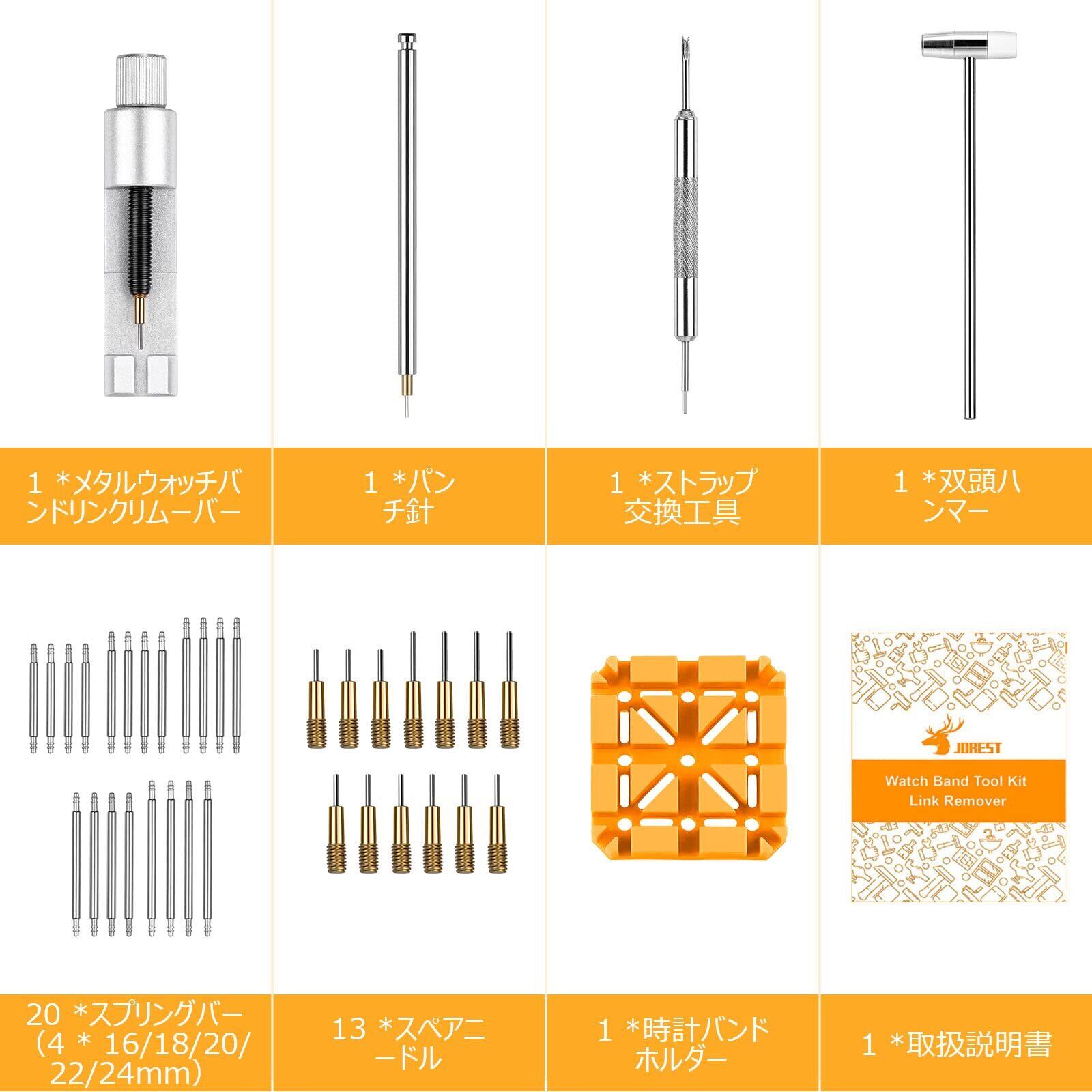 【JOREST】時計ベルト調整工具セット、腕時計 ベルト交換 工具、バネ棒外し 、腕時計 ピン抜き工具、取扱説明書、20個 バネ棒、13個 交換針、取扱説明書(英語版)