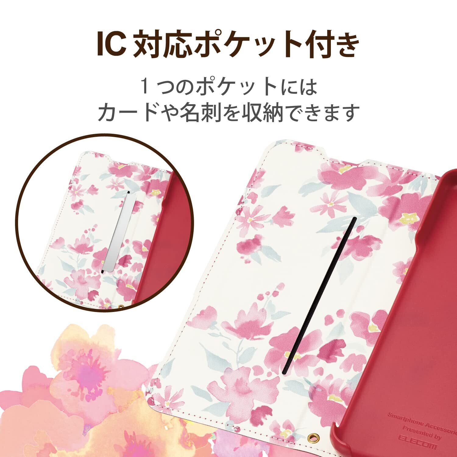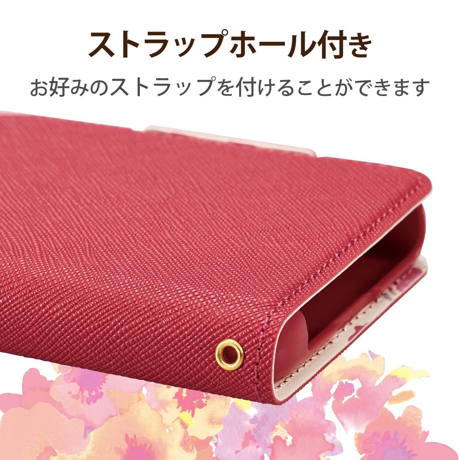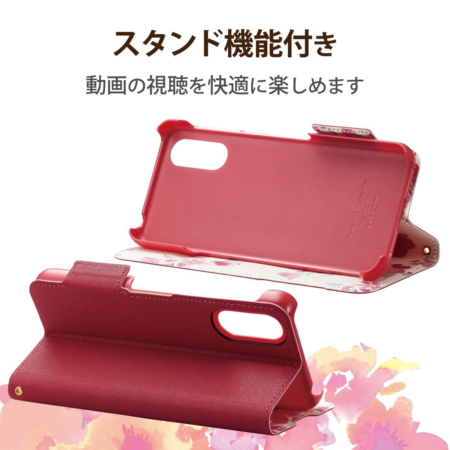 エレコム BASIO active (SHG09) / シンプルスマホ6 (A201SH) ケース カバー 手帳型 革 レザー 耐衝撃 マグネット付きフラップ 超軽量 薄型 花柄(ケース内側) ピンク PM-S224PLFUJPND | hananoki