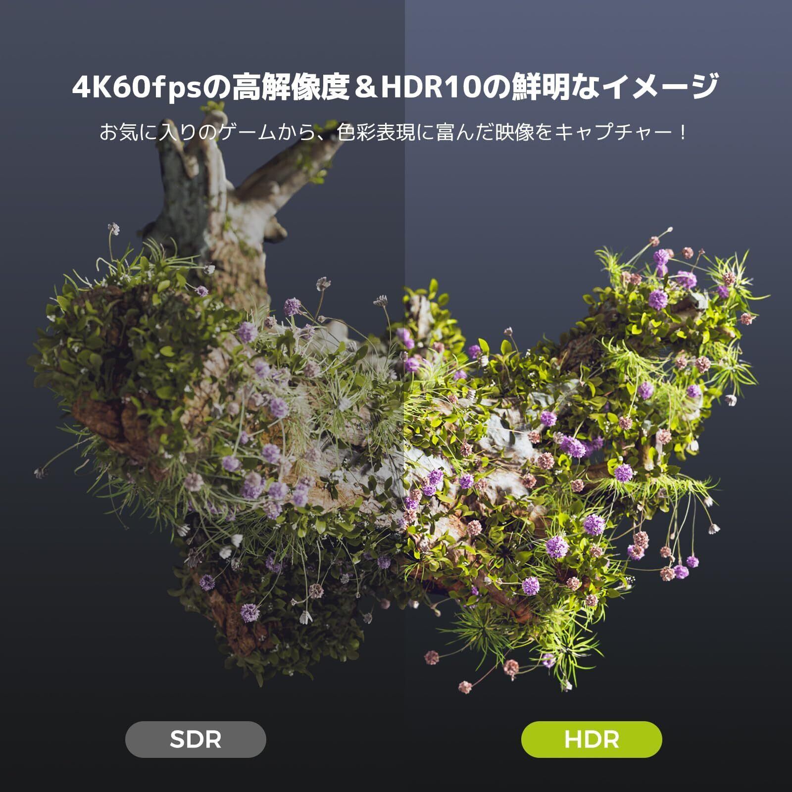 キャプチャーボード 4K60fps入力 HDMI2.0パススルー HDR10 4K60fps録画 USB3.1 低遅延 ライブ配信/ゲーム実況用 3.5mmオーディオジャック パソコン(Windows/macOS/Linux)/ゲーム機(Switch/PS5/Xbox)対応 YouTube/TikTok/Instagram Potplayer/OBS CCD30