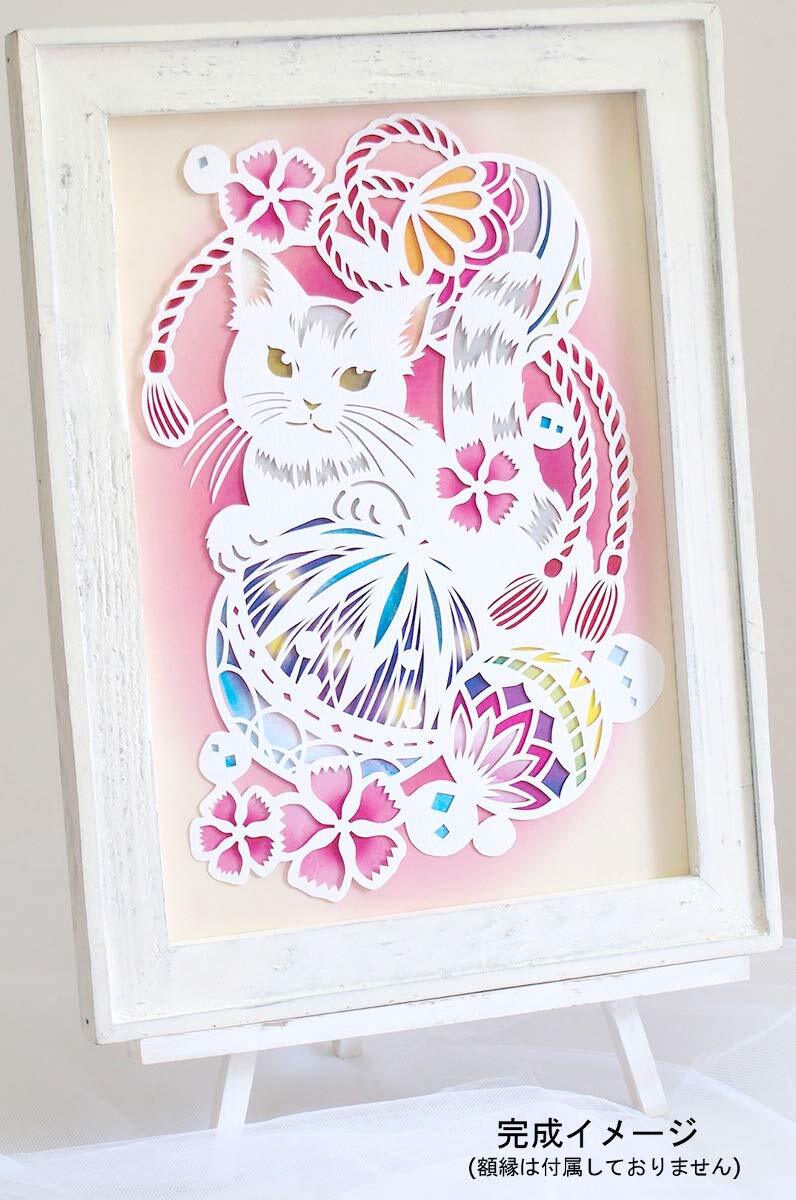 トラストプリンティング 切り絵 キット Pure White/猫と鞠 A4 WA4-H03