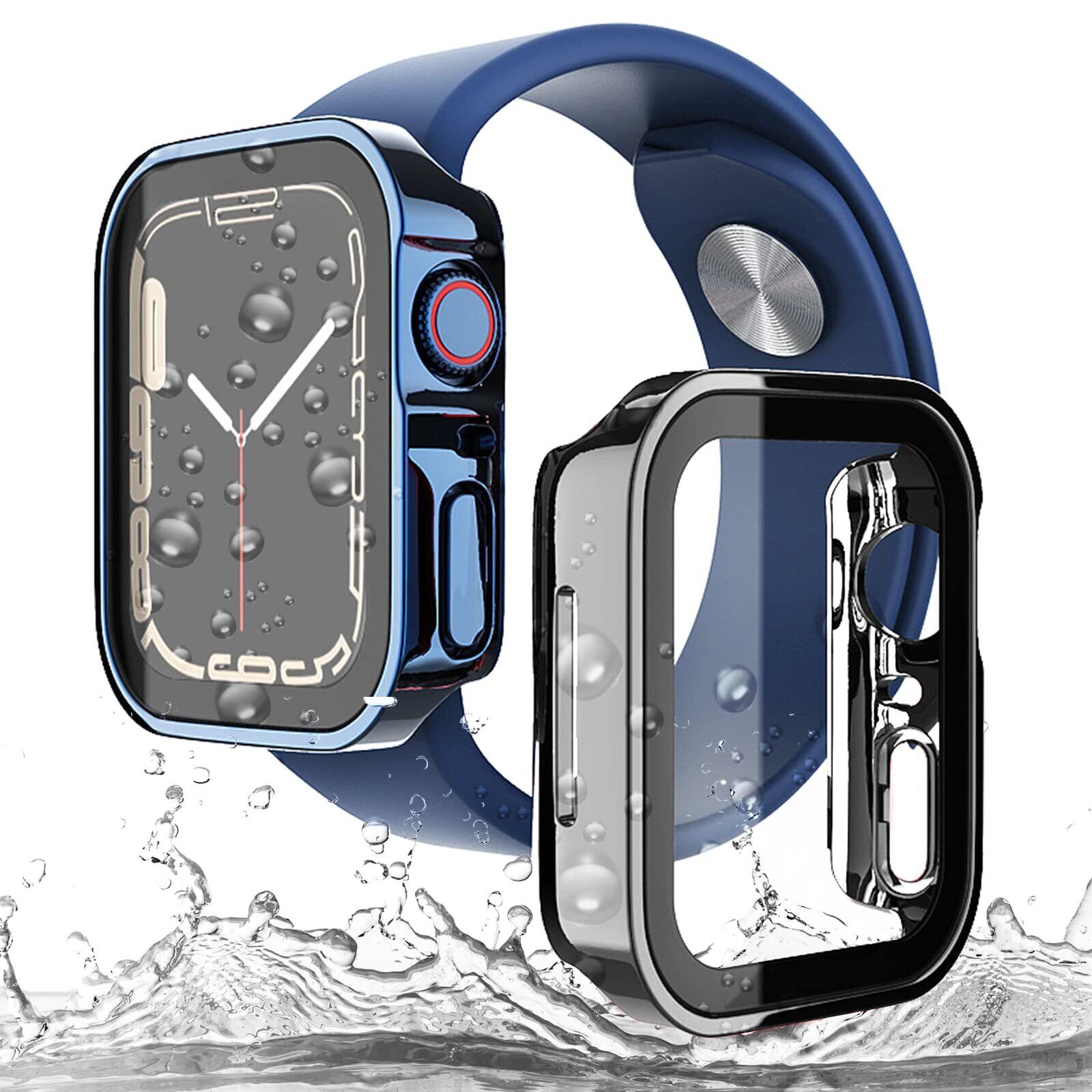[ELYBYYLE] 【2024強化版】 for Apple Watch ケース 41mm 45mm 防水ケース IP68完全防水 バンド 水泳・スポーツ専用 ガラスフィルム 一体型 apple watch 7 用 カバー アップルウォッチ ケース Apple Watch 9/8/7 45mm対応 光沢のブラック&シルバー