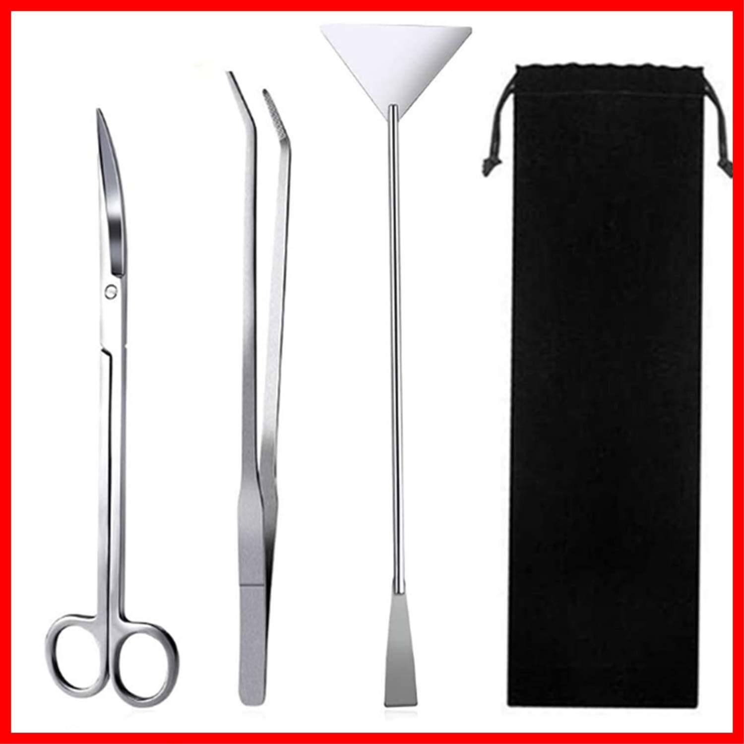 水草トリミングセット カーブハサミ カーブピンセット サンドフラッター 3点セット ステンレススチール製 実用 便利 多機能 水槽管理 水草植栽 水族館用 収納バッグ付き