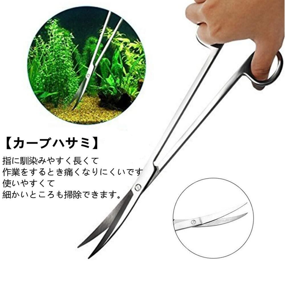 【3点セット】: 水草用トリミング用具:カーブハサミ25cm、カーブピンセット27cm、サンドフラッター32cm。合計3点セット。