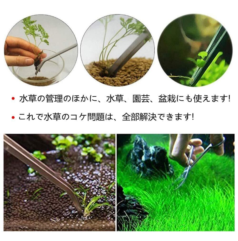 【カーブピンセット】:流木や石、ほかの水草の間などにも植栽が行ないやすいよう、アクアリウムに最適な独自の形状です。先端もきっちり合わさり、茎の細い水草やコケ類の処理に便利です。