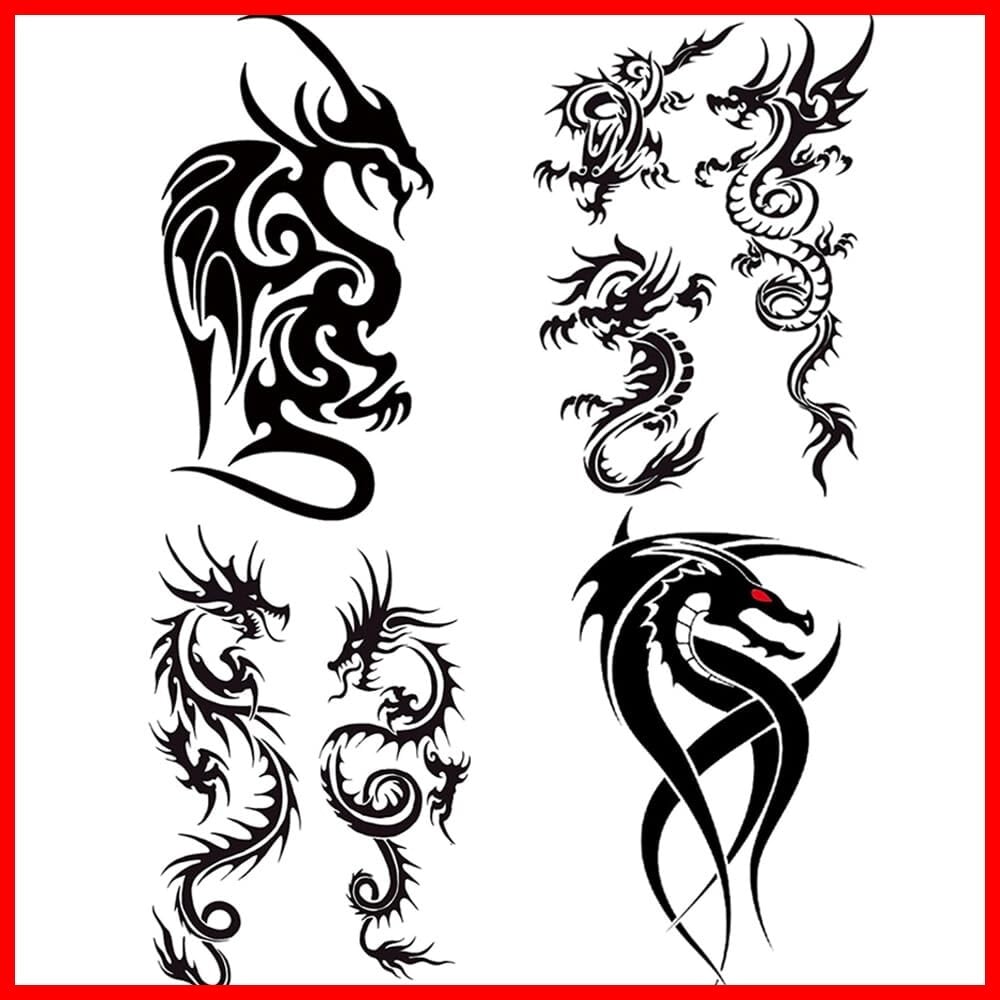 Yesallwas タトゥーシール 龍 飛竜 4枚セット 黒 竜 入れ墨シール タトゥーステッカー ボディー 刺青シール 長持ち 防水 メンズ 約12cm×19cm