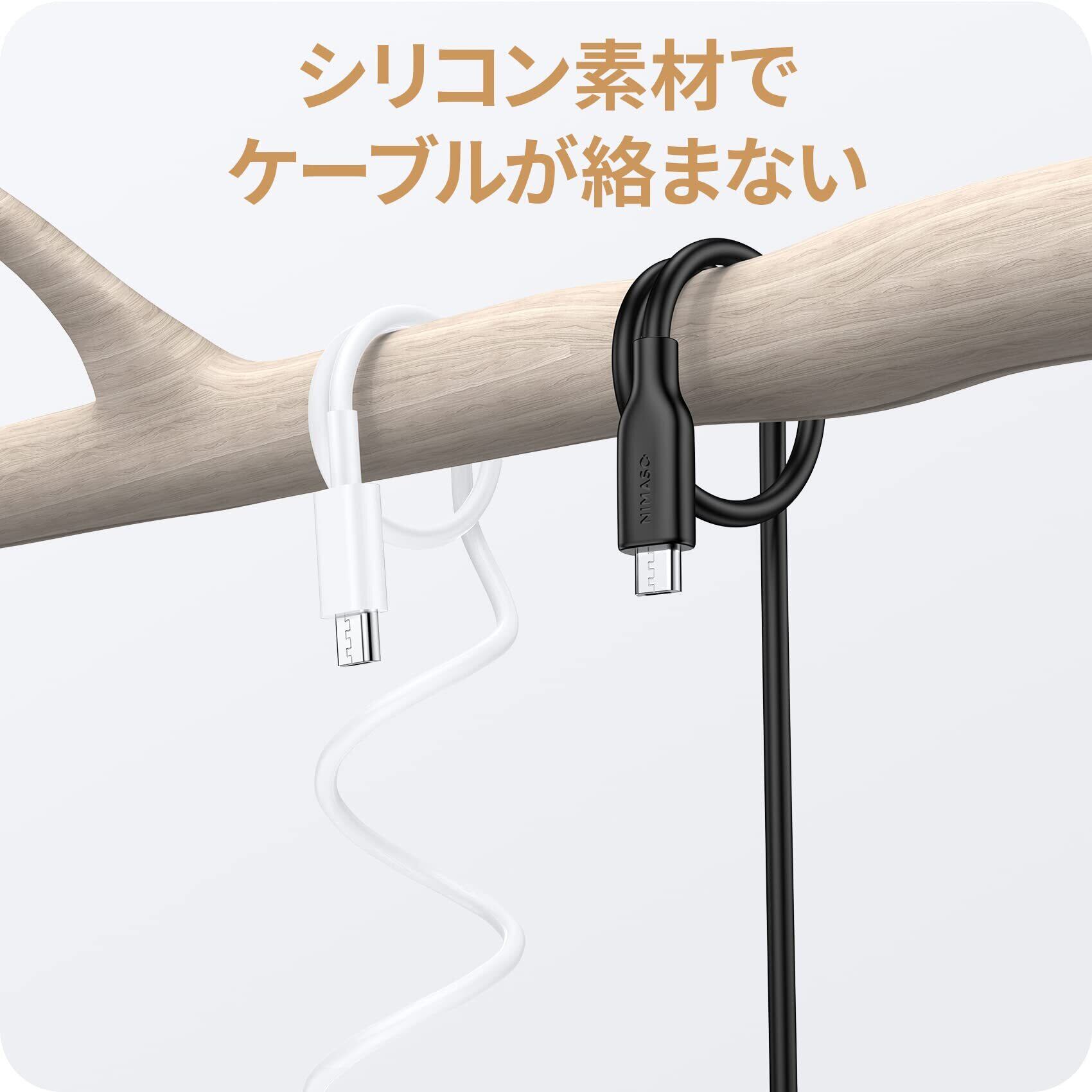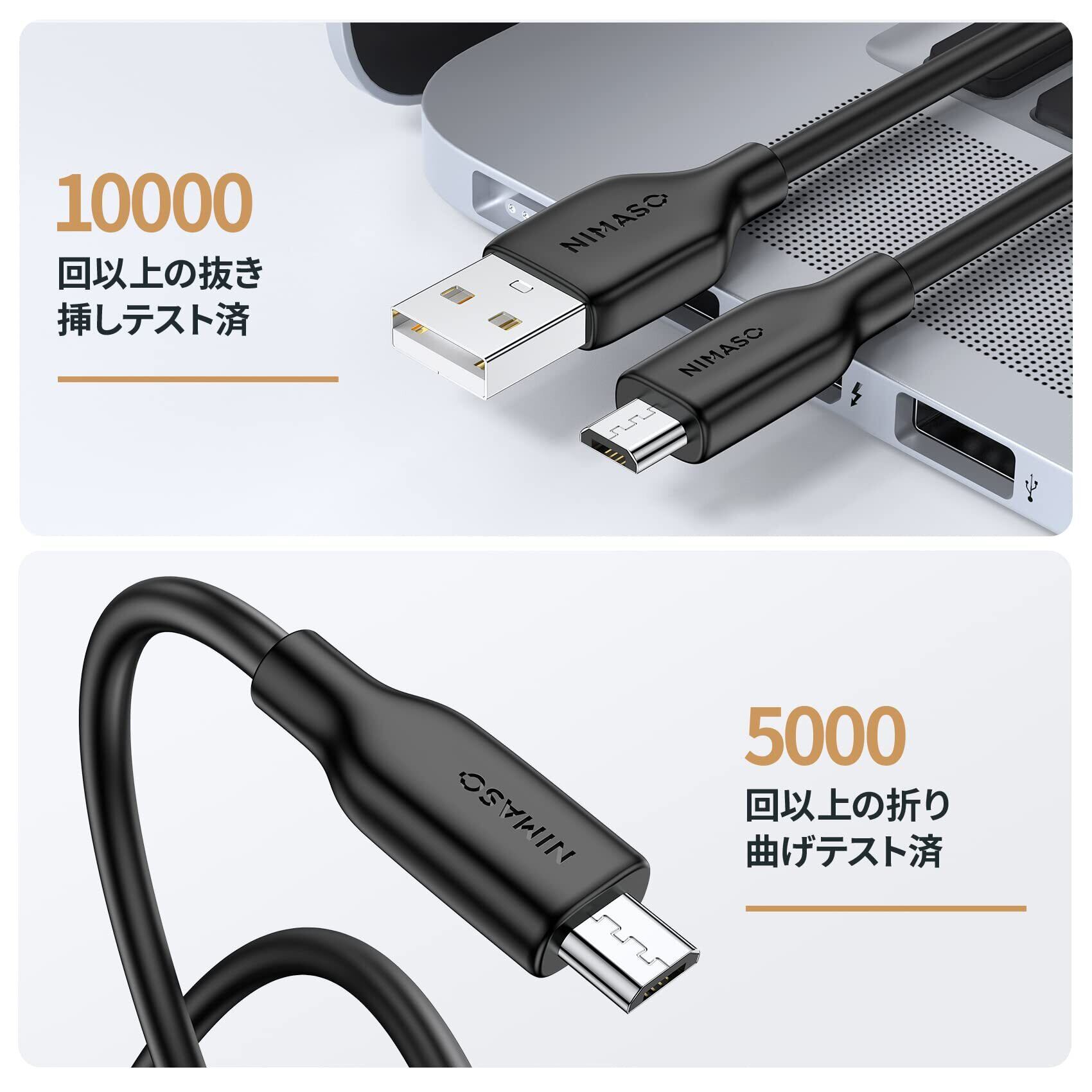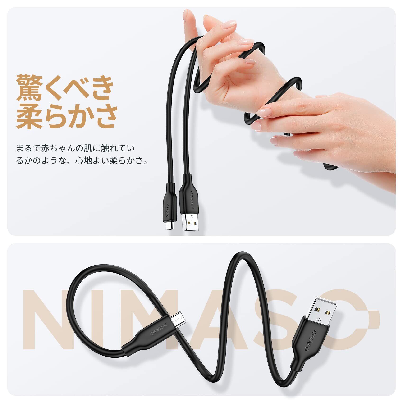 NIMASO Micro USB ケーブル (1m ブラック) マイクロ アンドロイド充電ケーブル 【シリコン素材 断線防止 USB 2.0 2.4A急速充電】 Xperia、Galaxy、Nexus、HUAWEI、Kindle 等 Micro B デバイス対応 NCA23C643