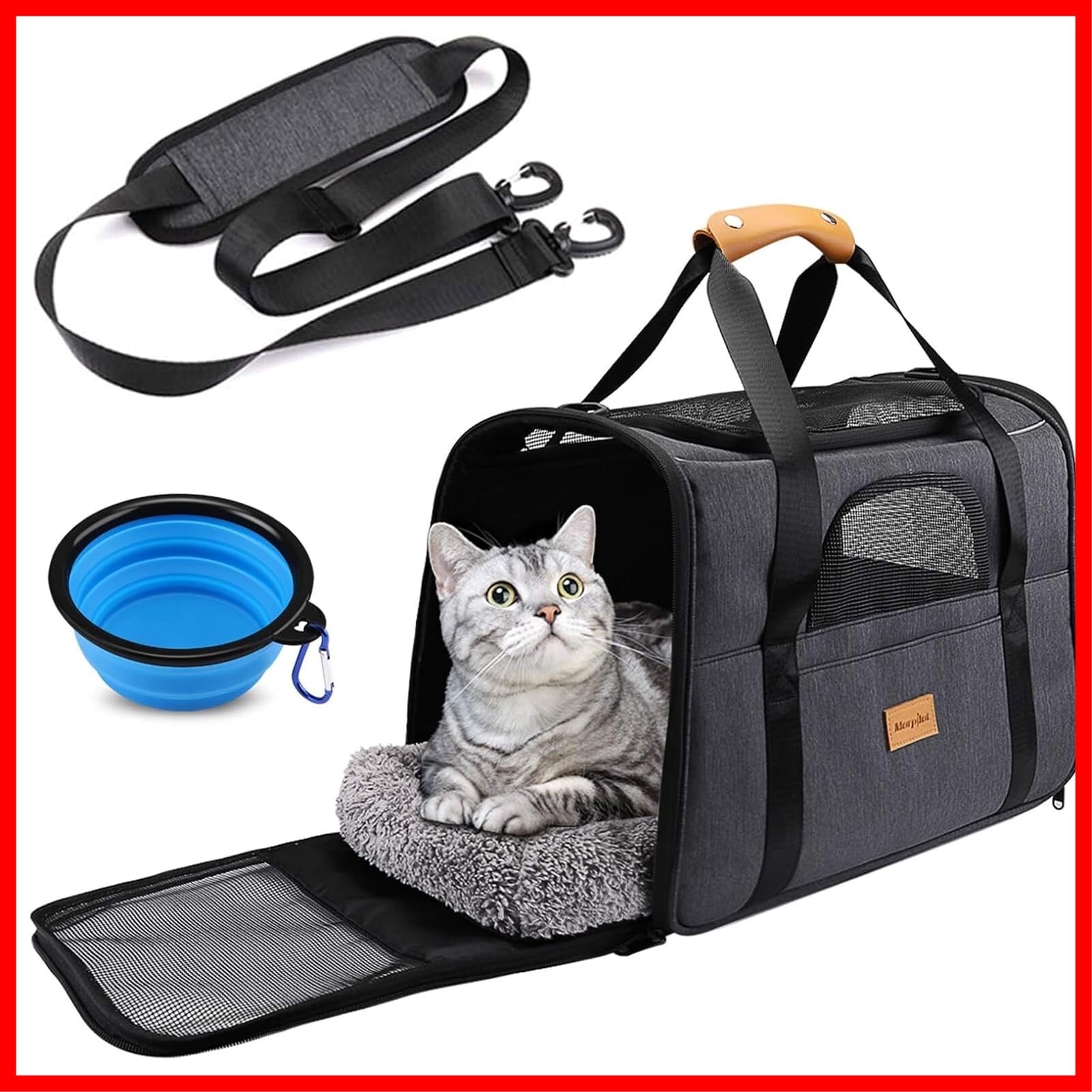 Morpilot ペットキャリー バッグ 4way ショルダー 中・大型猫・小型犬・うさぎ用 リュック 折りたたみ 変形しない 通気性 臭気がない 引っ掻き傷に強い 車載/ドライブ/キャンピング/旅行/通院/災害避難用 ペットバッグ (マット/飛び出し防止リード/猫食器付き) Mサイズ | hananoki