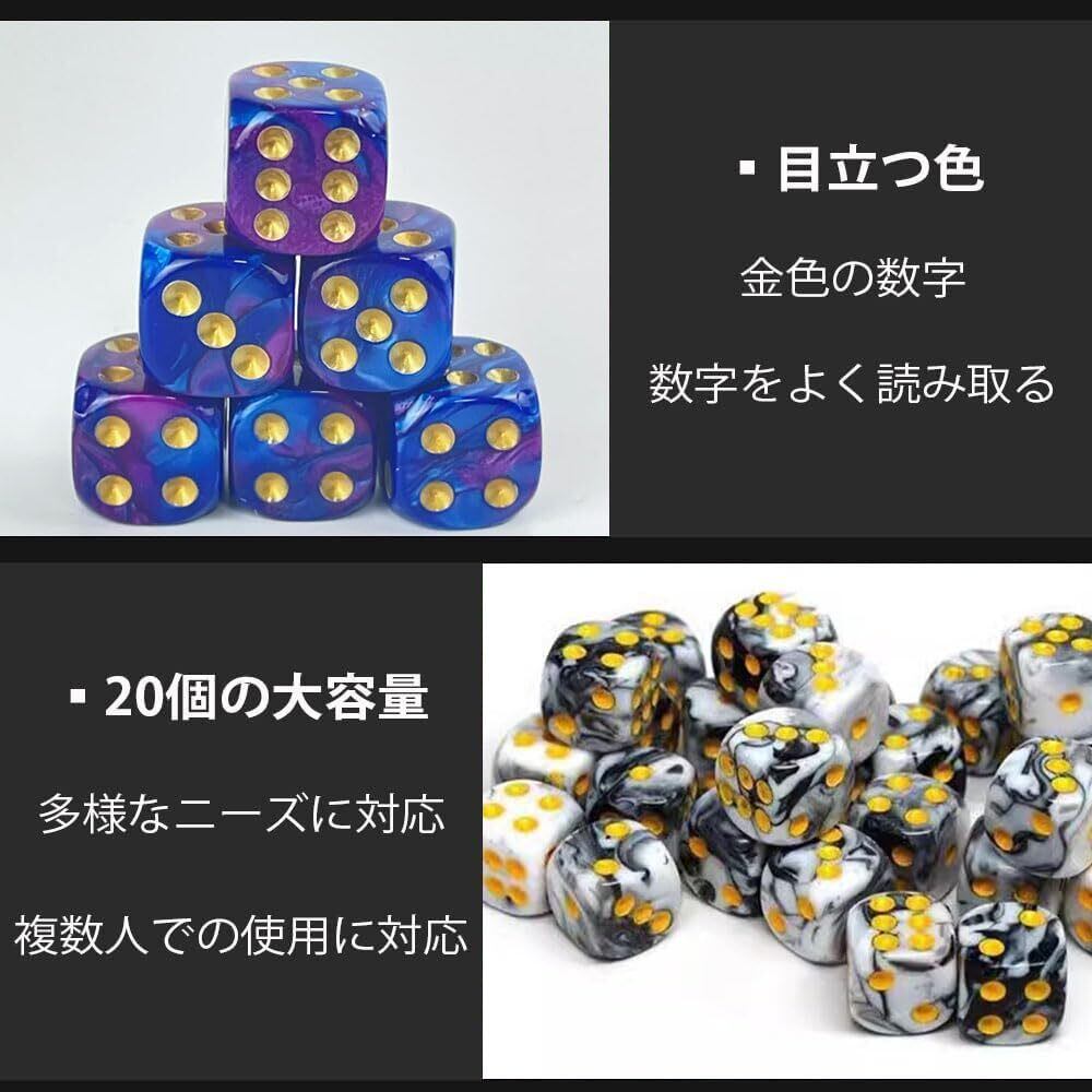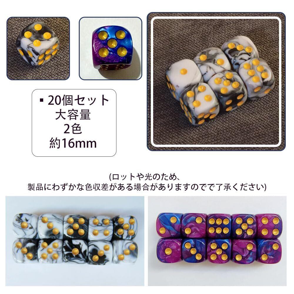 サムコス サイコロ 多面体ダイス 20個セット 2色 きれい D6サイコロ ブレンドカラー パーツ ダイス セット 6面ダイス テーブルゲーム用 ボードゲーム カードゲーム 複数のゲームが利用可能 16mm (ブラックホワイト+パープルブルー) | hananoki