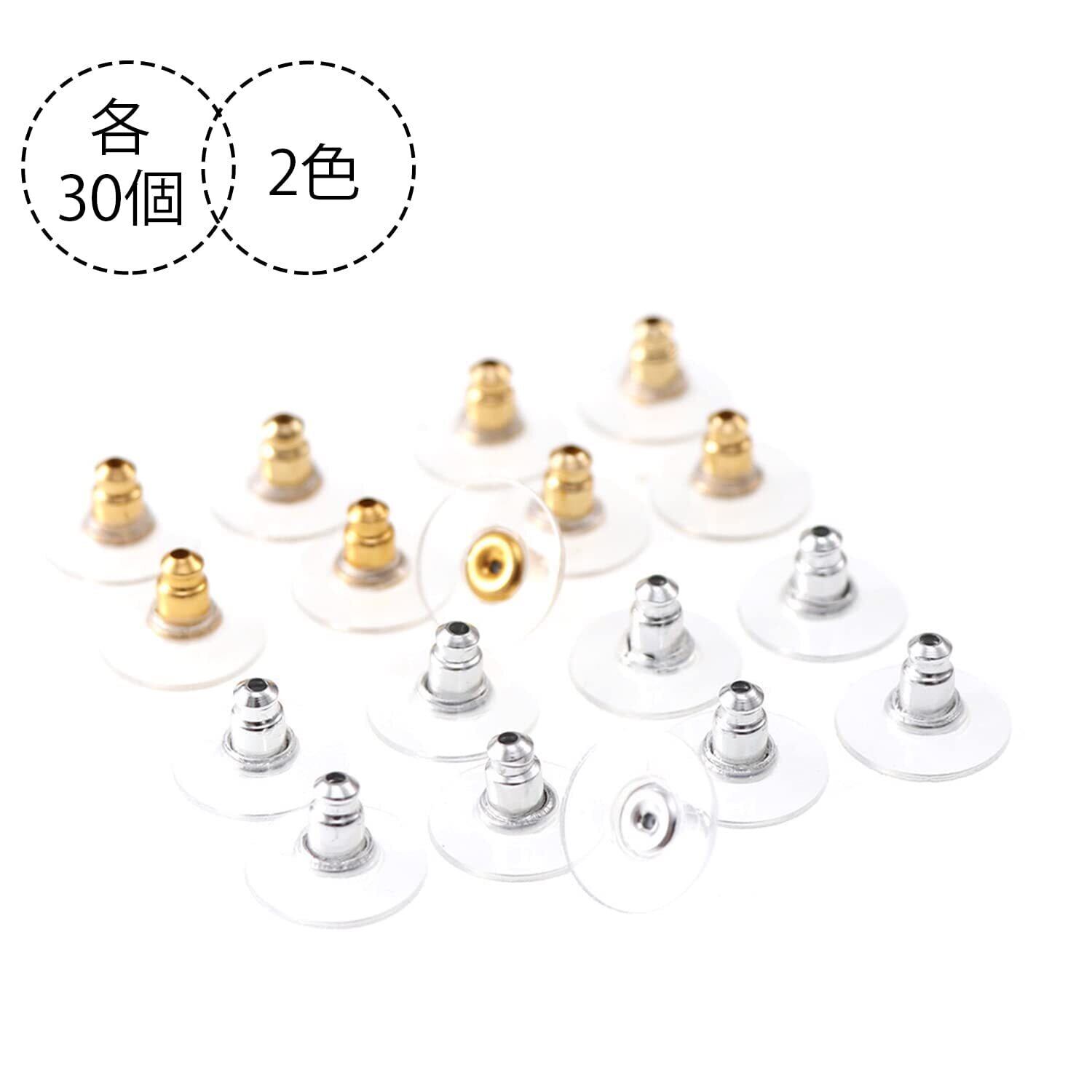 RICISUNG ピアス キャッチ 落ちない 60個(30ペア) 下向き防止 キャッチ ダブルロックキャッチ ピアス セット シルバー 18金メッキ メンズ レディース 2色 (各15ペア) ゴールド、シルバー