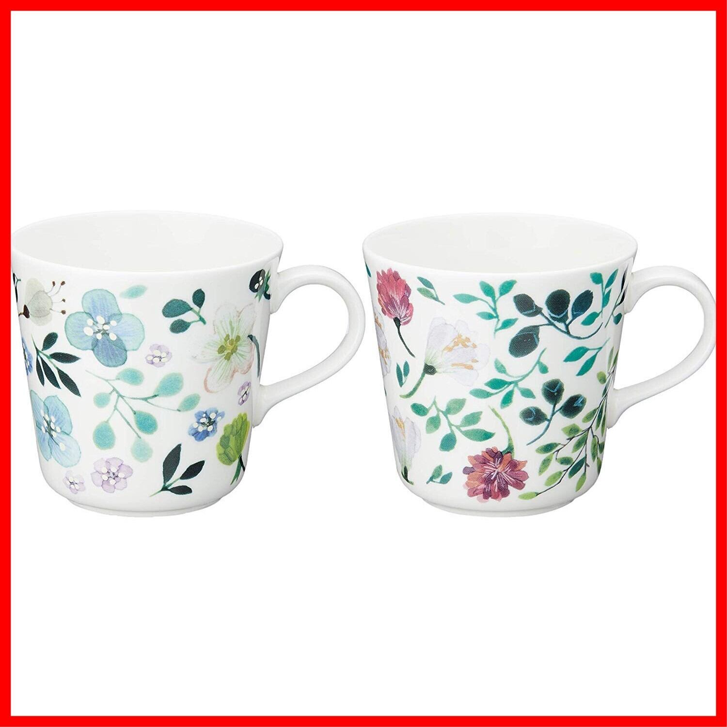 NARUMI(ナルミ) ペア マグカップ アンナ・エミリア 340cc グリーン 花柄 かわいい 2柄セット 大きめ 電子レンジ温め 食洗機対応 ギフト箱入り 96604-23165P | hananoki