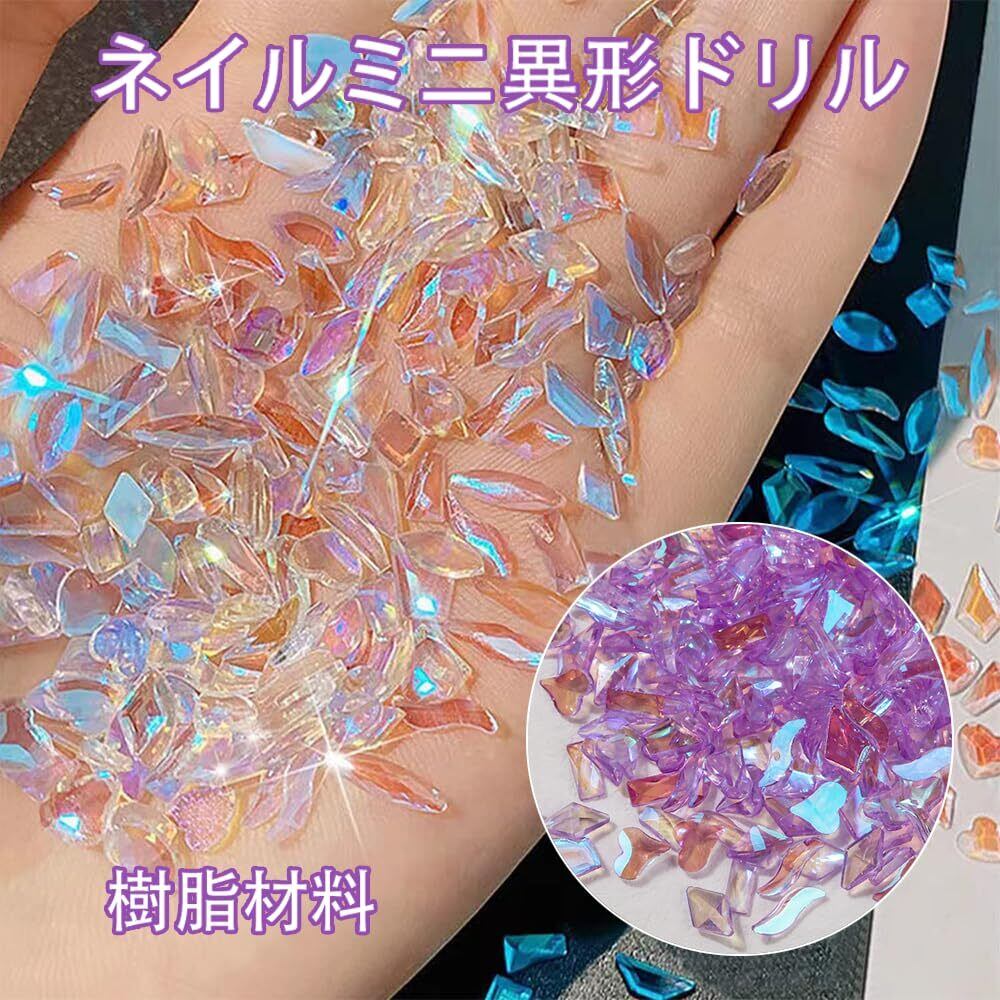 【製品仕様】名称:ネイルミニ異形ドリル。材質:ドリル、樹脂。色:オーロラドリル、オーロラシャンパン、オーロラパウダー、オーロラパープル。数量:約200個、各色50個。