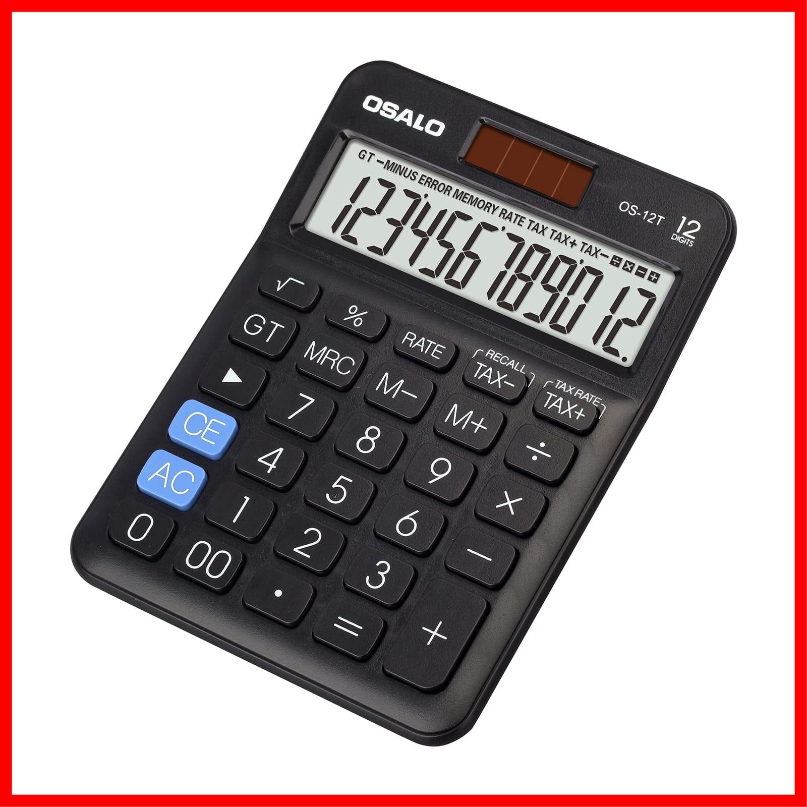 卓上電卓 大型LCDディスプレイ 12桁 数字ビッグボタン 税金会計計算機 電池式 太陽光発電 デスク オフィス 自宅 ビジネス用 (OS-12T 黒)