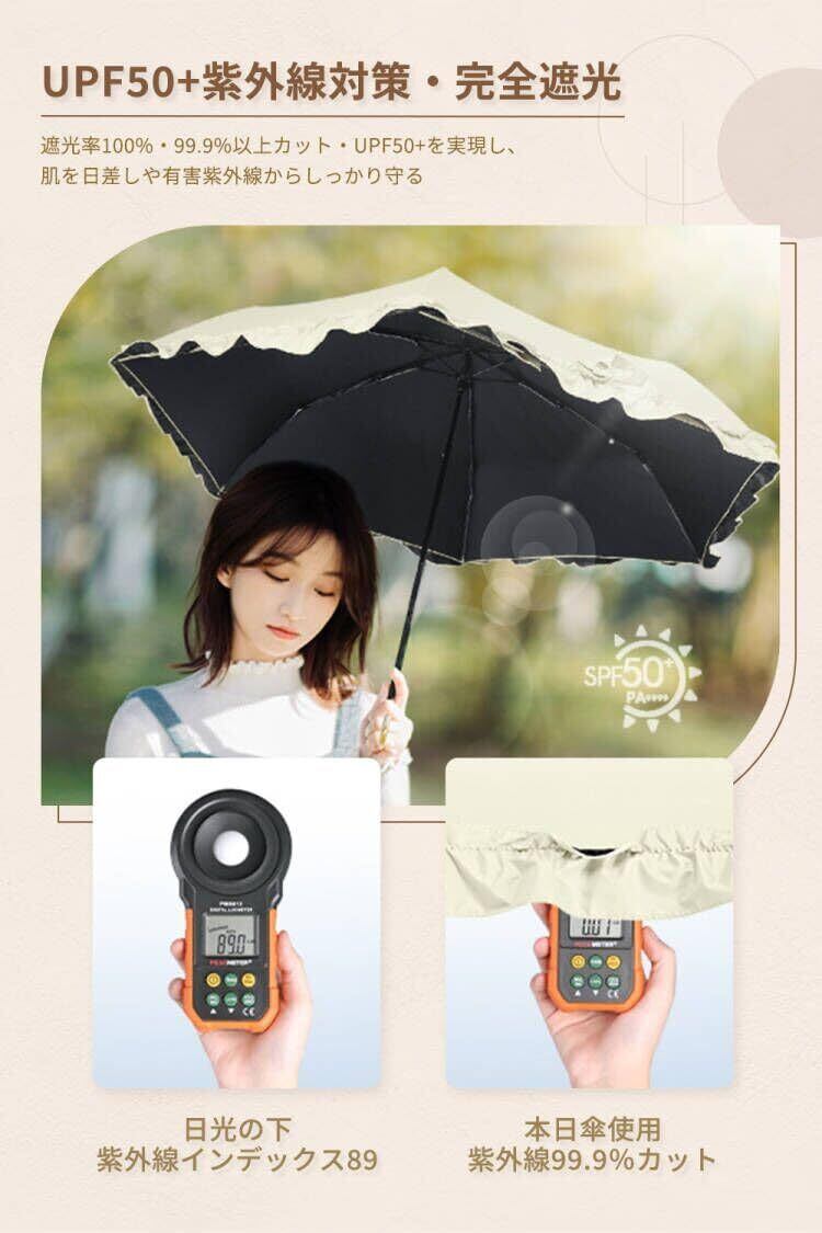 ✦【夏の日焼け対策・遮光効果】日傘生地の特殊コーティング加工により、UPF50+、紫外線を99.9%以上カットでき、より優れたUVカット効果を得ることができるので、紫外線対策にはピッタリのアイテムとなっています。裏面がブラックコーティングされて、地面や壁からの放射線を吸収して反射光を防ぎ、優れた遮光性を発揮する折りたたみ式日傘です。