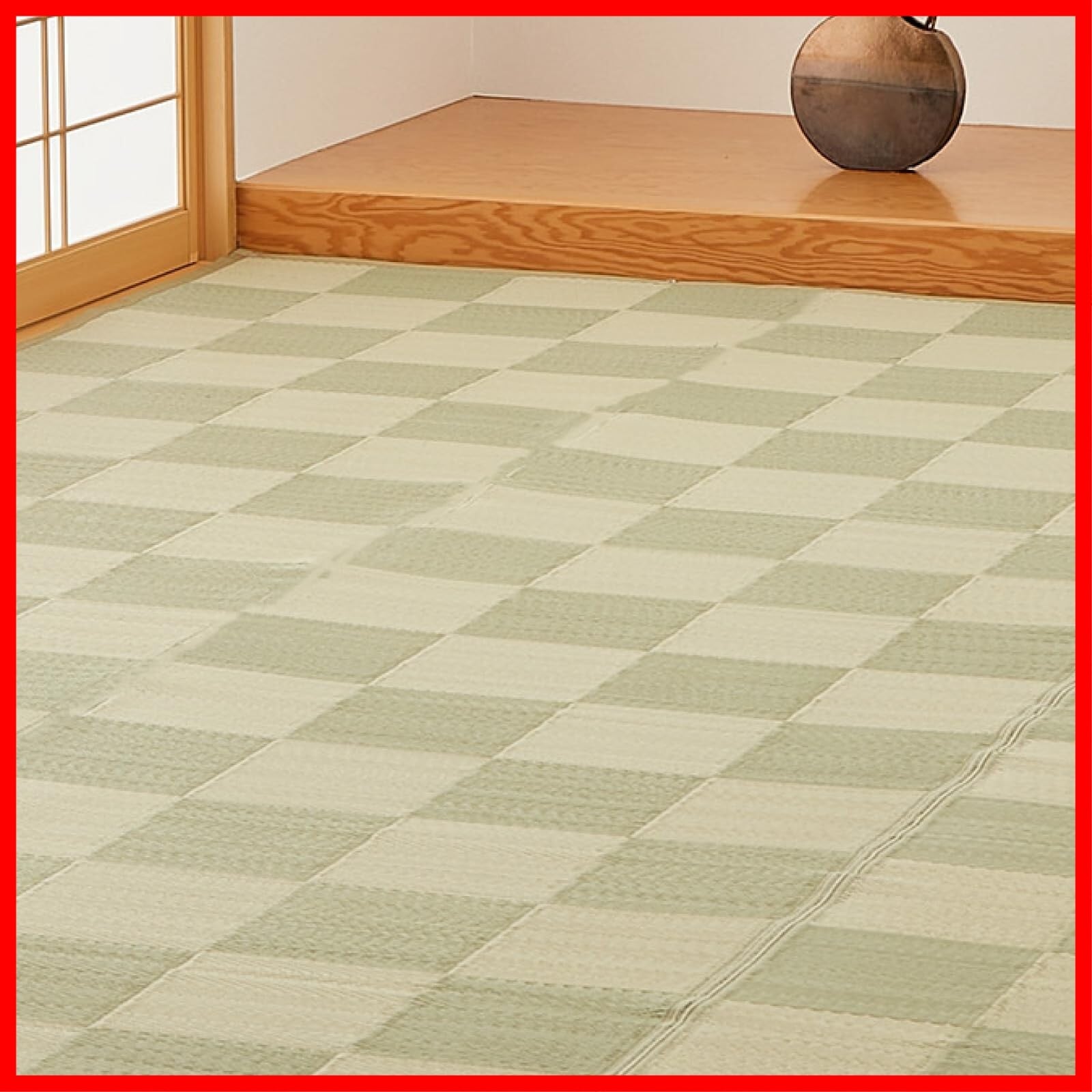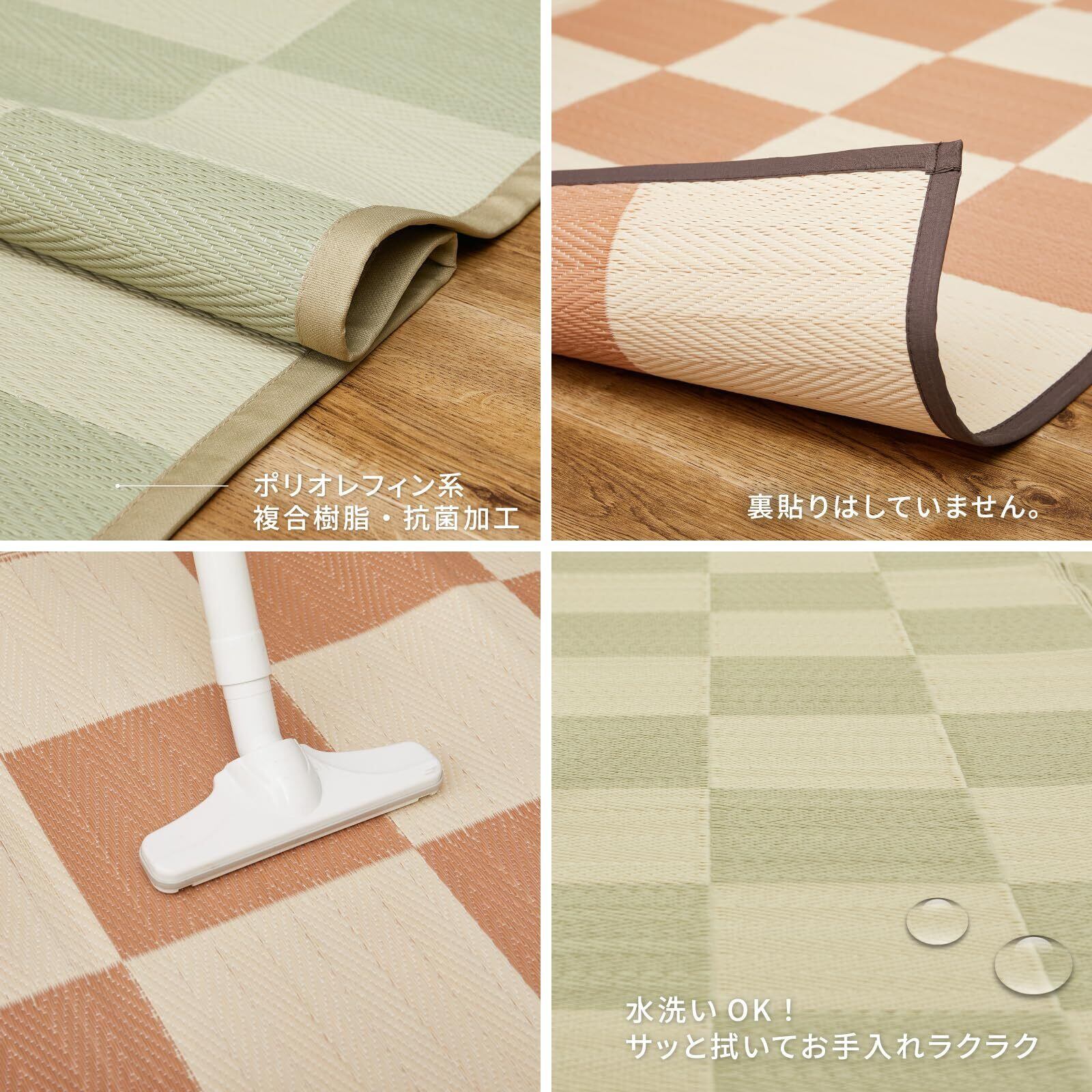 萩原 洗える い草風カーペット グリーン 江戸間6畳 約261X352cm 「倉間」 ラグ 花ござ 抗菌 市松柄 保育園 ペット 畳保護