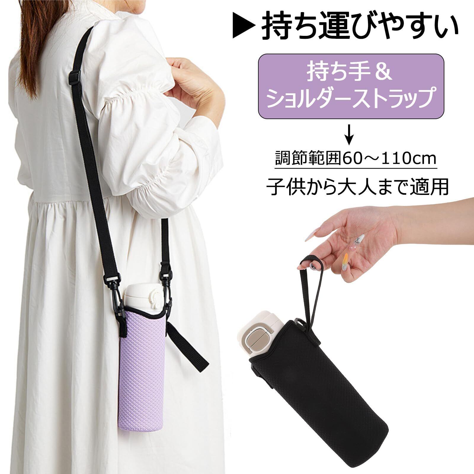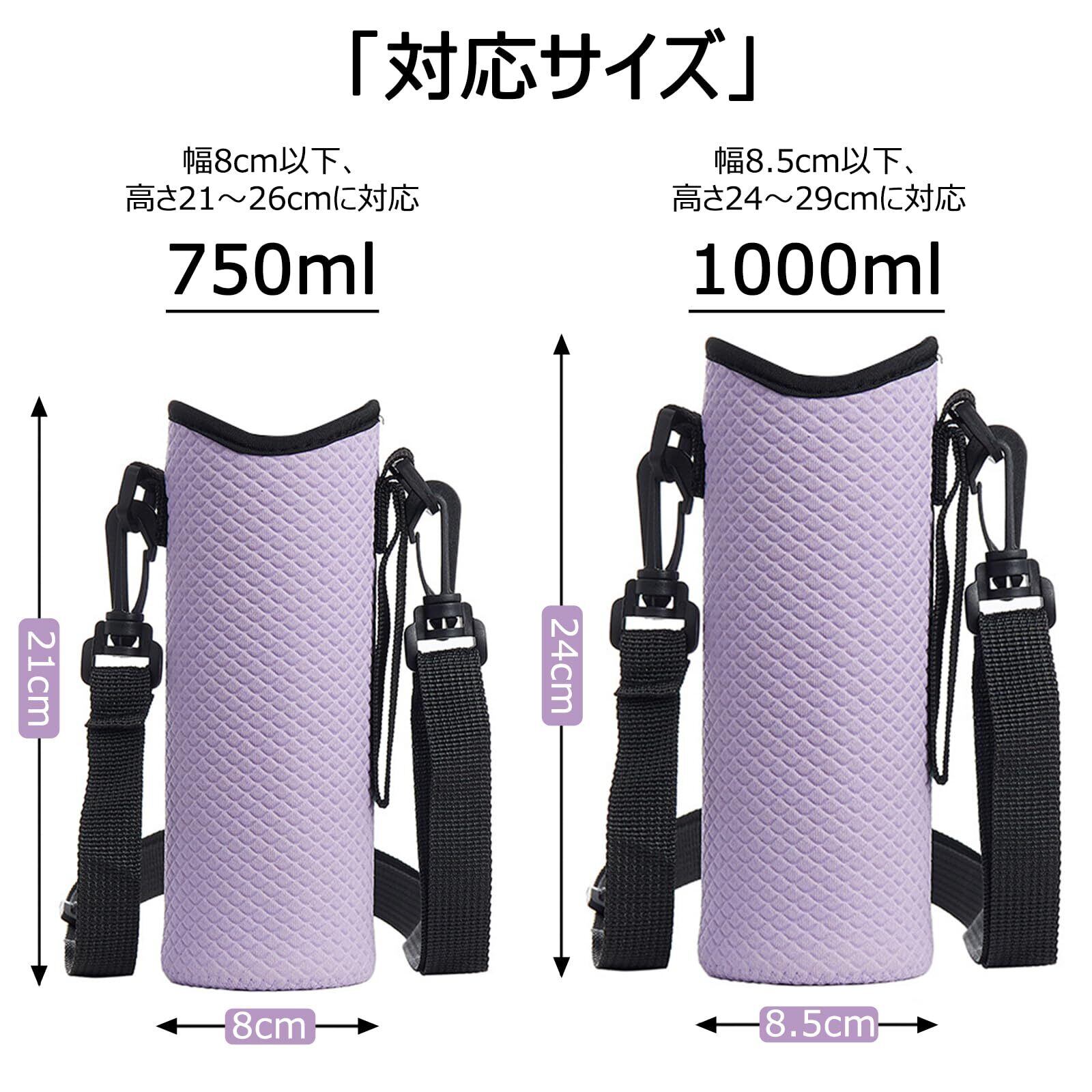 Samlyru 水筒カバー ショルダー 750ml 1L 保冷保温 マイボトル 肩掛け 手提げ 水筒ポーチ 学校/通勤/旅行 持ち運び (ネイビー, 1000ml)