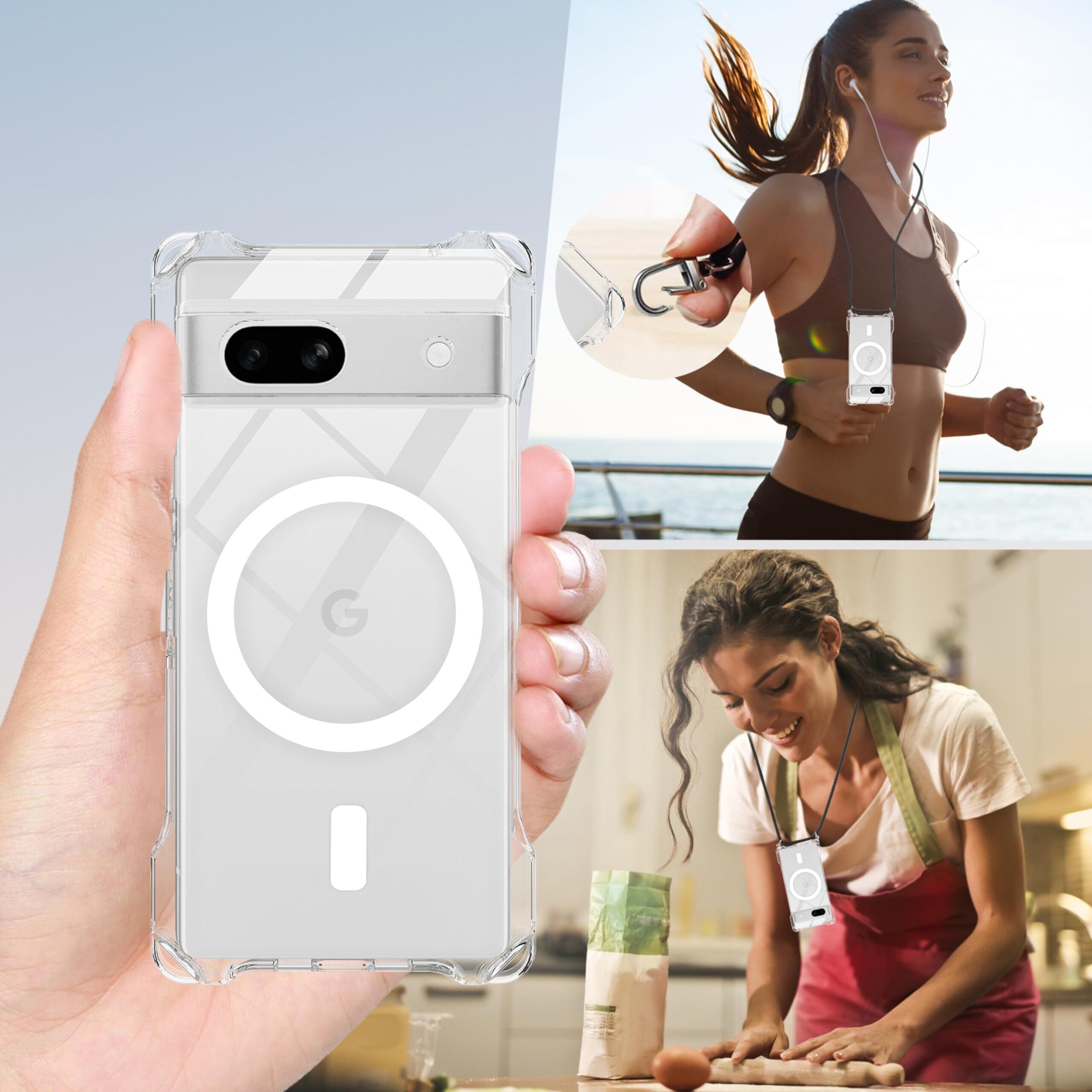 Google Pixel 7A用 ケースクリア HILEGENERグーグル ピクセル7Aカバー 縦/横 2WAY肩掛け 斜めかけ純透明 ケース【長さ調整可能 ブラック縄掛け付き】紐付き 斜めがけ 織りスト ネックストラップ ショルダーケース 落下防止 紛失防止(グーグル ピクセル7A-クリア)