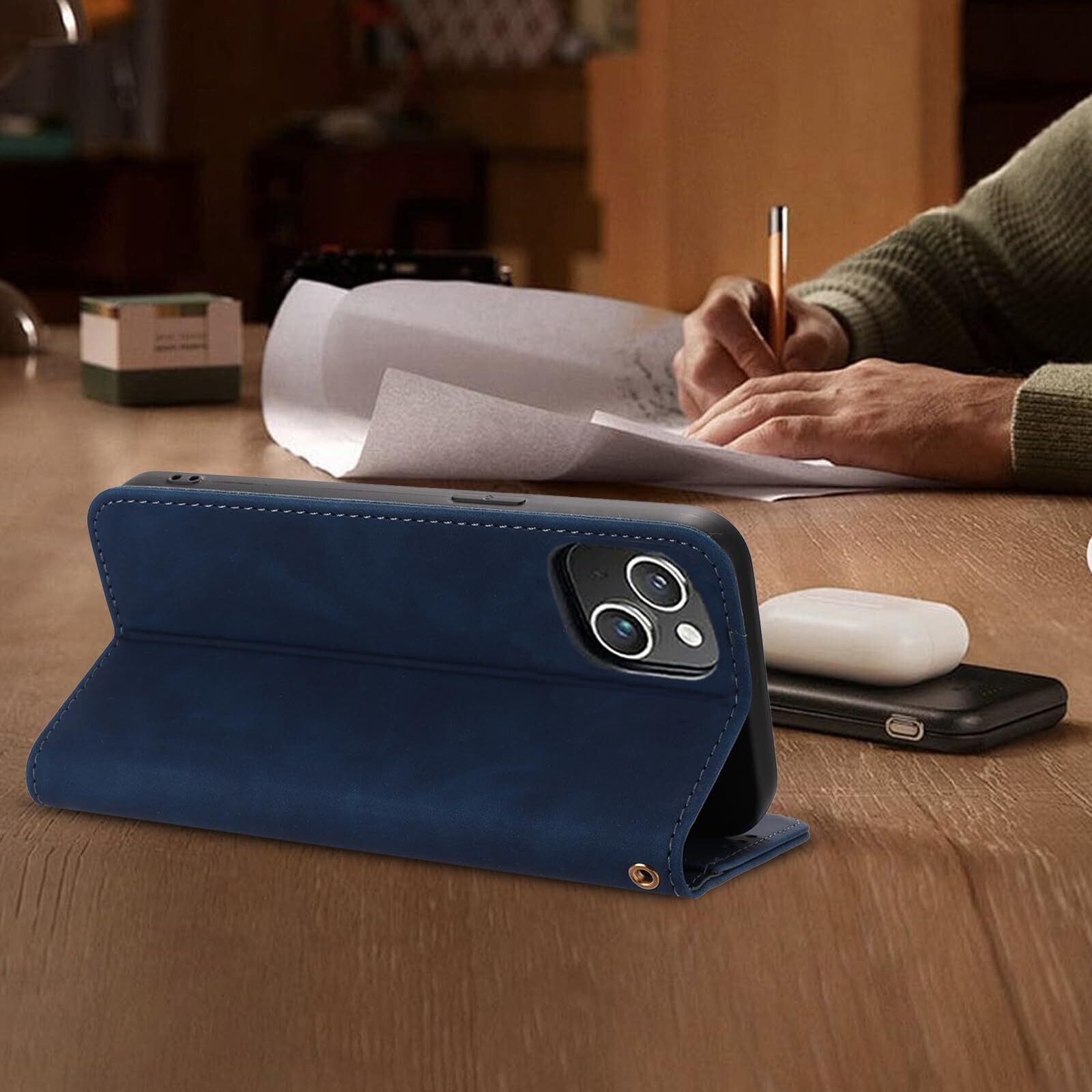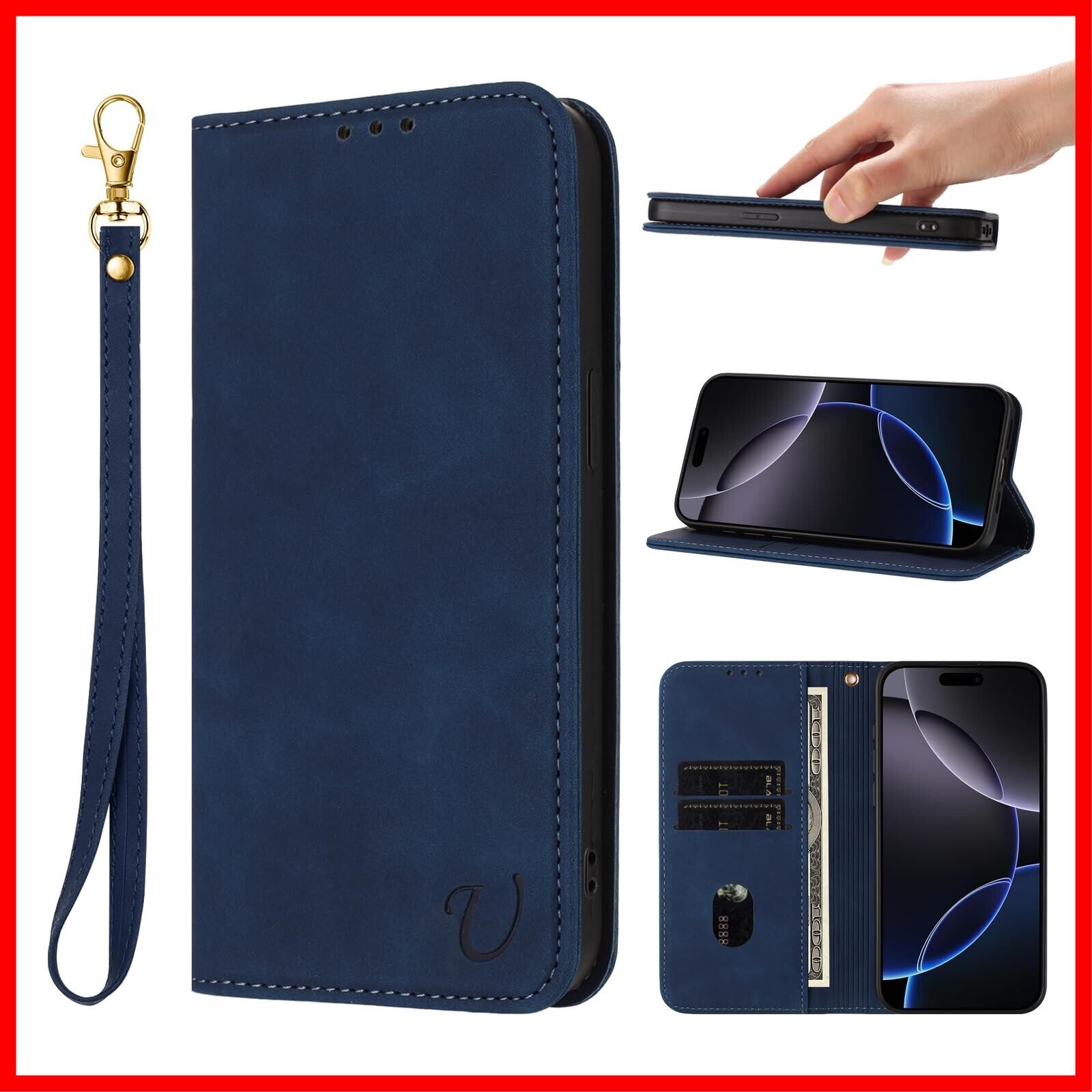 iPhone 15 ケース 手帳型 iPhone15 カバー アイフォン スマホカバー あいふぉん 手帳型 ストラップ付き 肌触り良いレザー スマホケース マグネット内蔵 全面保護 耐衝撃 耐摩擦 スタンド機能 カードケース 財布型 カード入れ ブルー