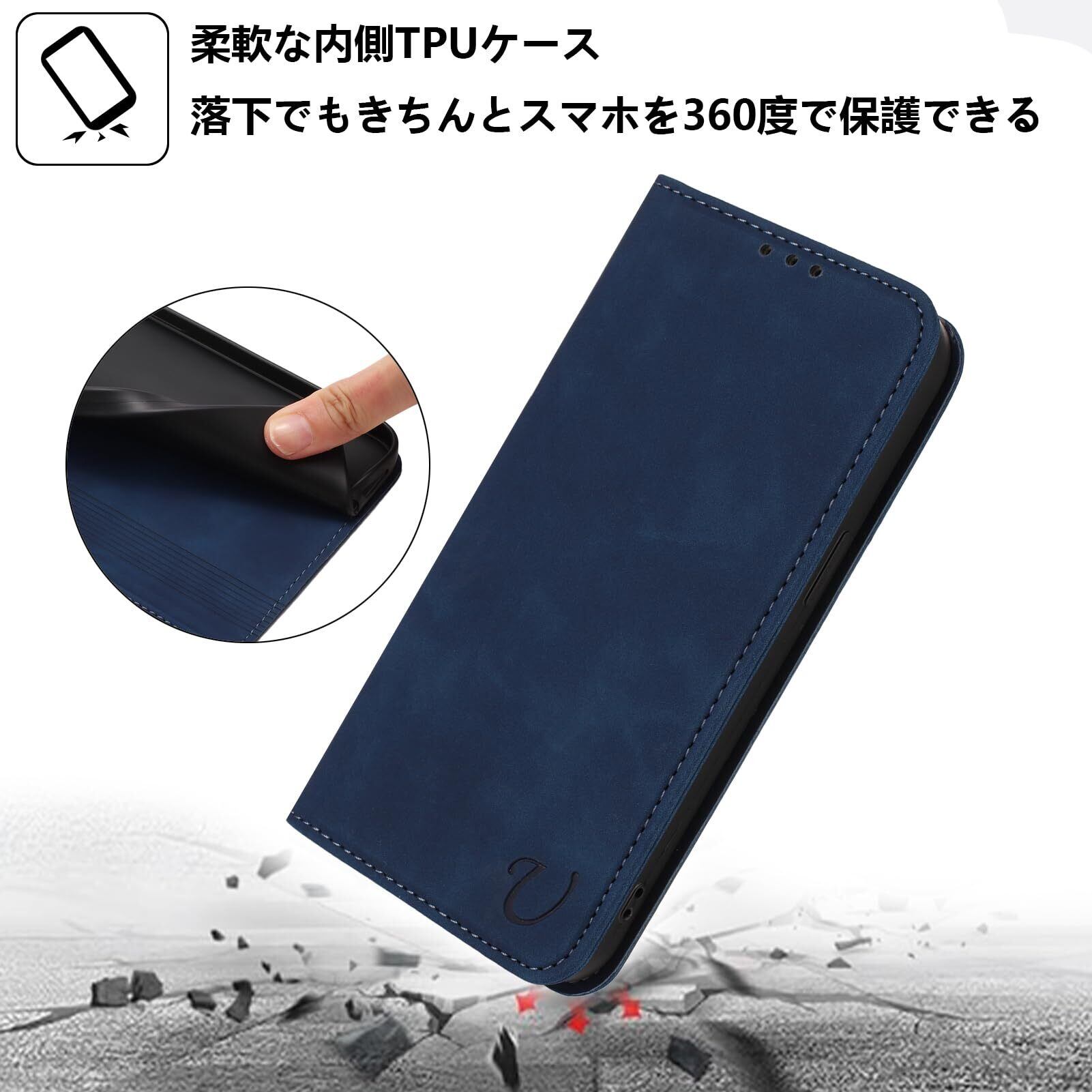 【マグネット内蔵 全面保護】マグネット内蔵の手帳型式で、カバーを閉める時、片手で簡易に開閉することはできます。外側は高品質のPU製で、落下時の衝撃を効果的に吸収してスマホへの直接的な外力を防げるようになっています。内側は柔軟性あるTPUケースで、二重の保護として機能します。破損することはありません、衝撃から本体を各方向で360°保護します。