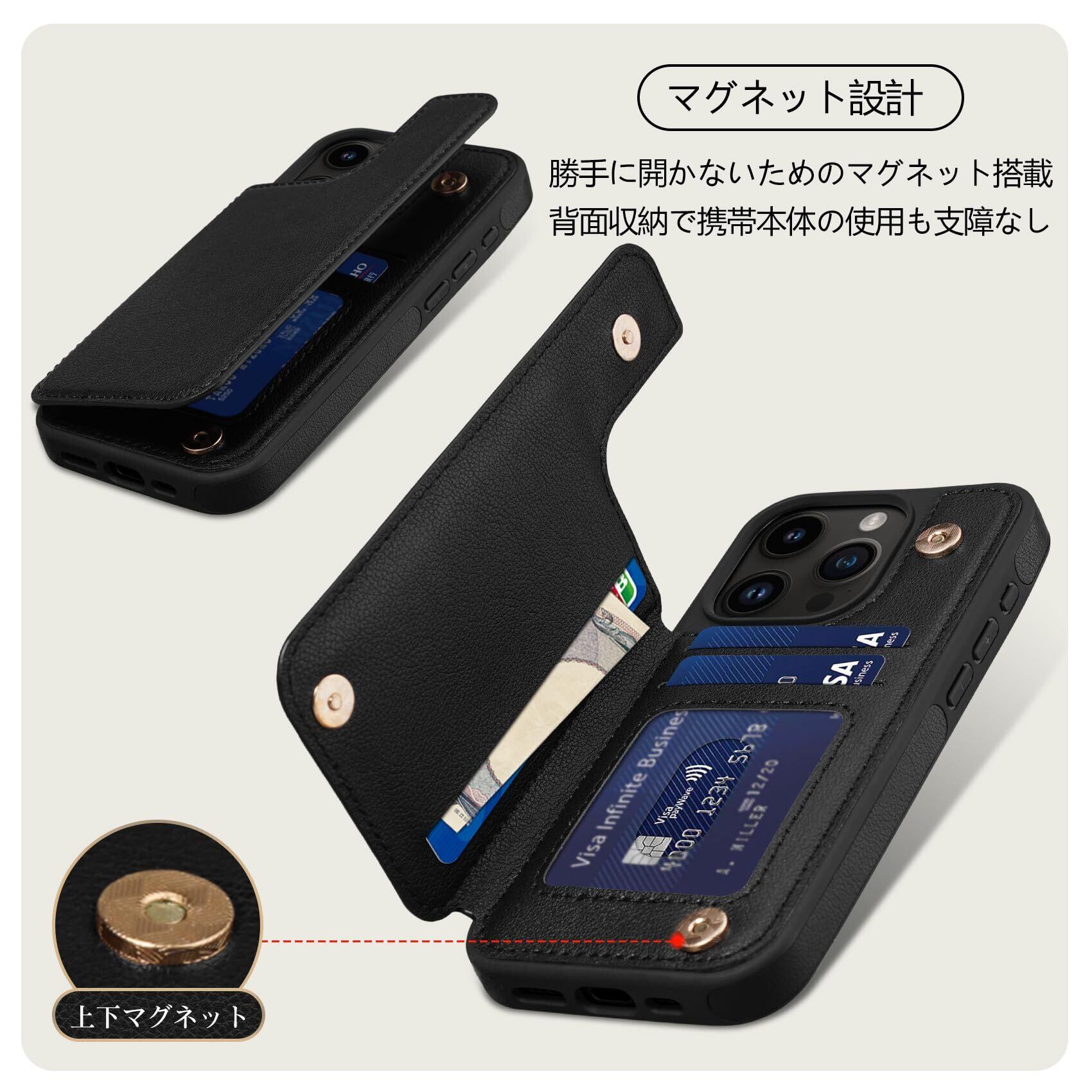 Shlybaay iPhone 16 Pro 用 ケース 背面 手帳型 カード iPhone16 Pro 用 背面ケース 手帳型ケース いPhone 16 Pro 用 スマホケース ICカード収納 アイフォン アイホン 16 プロ ぷろ 用 カバー マグネット 6.3inch対応 T1 ブラック | hananoki
