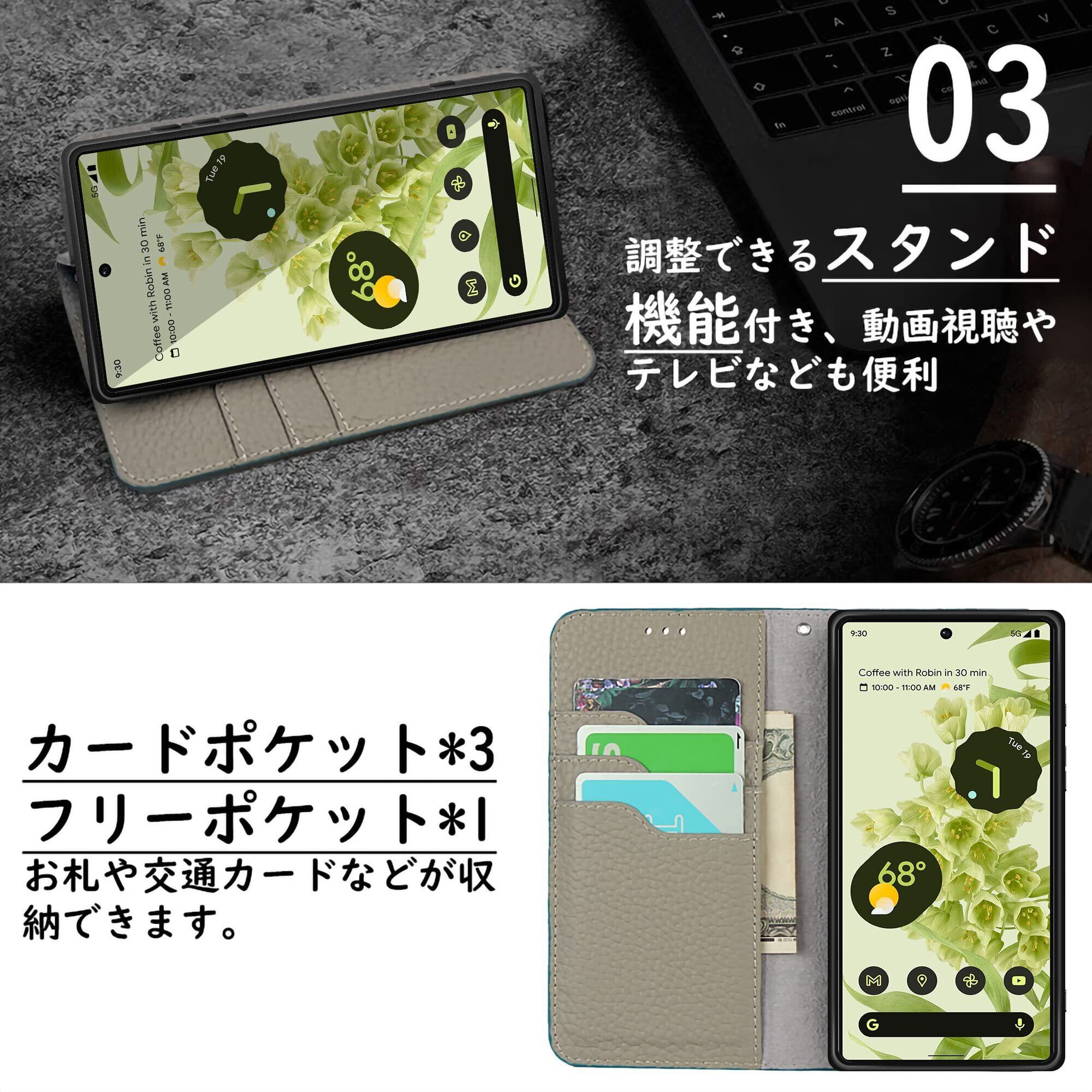 【対応機種】 Google Pixel 6a 対応ケース【素材】高級牛本革 対応機種と画面サイズをよくご確認のうえ、ご購入いただけますようお願い致します。マグネット内蔵で開閉にストレスがありませんし、しっかり閉じられます。収納ベルト付きでイヤホンの収納方法を改善して、悩みを解消しましょう。