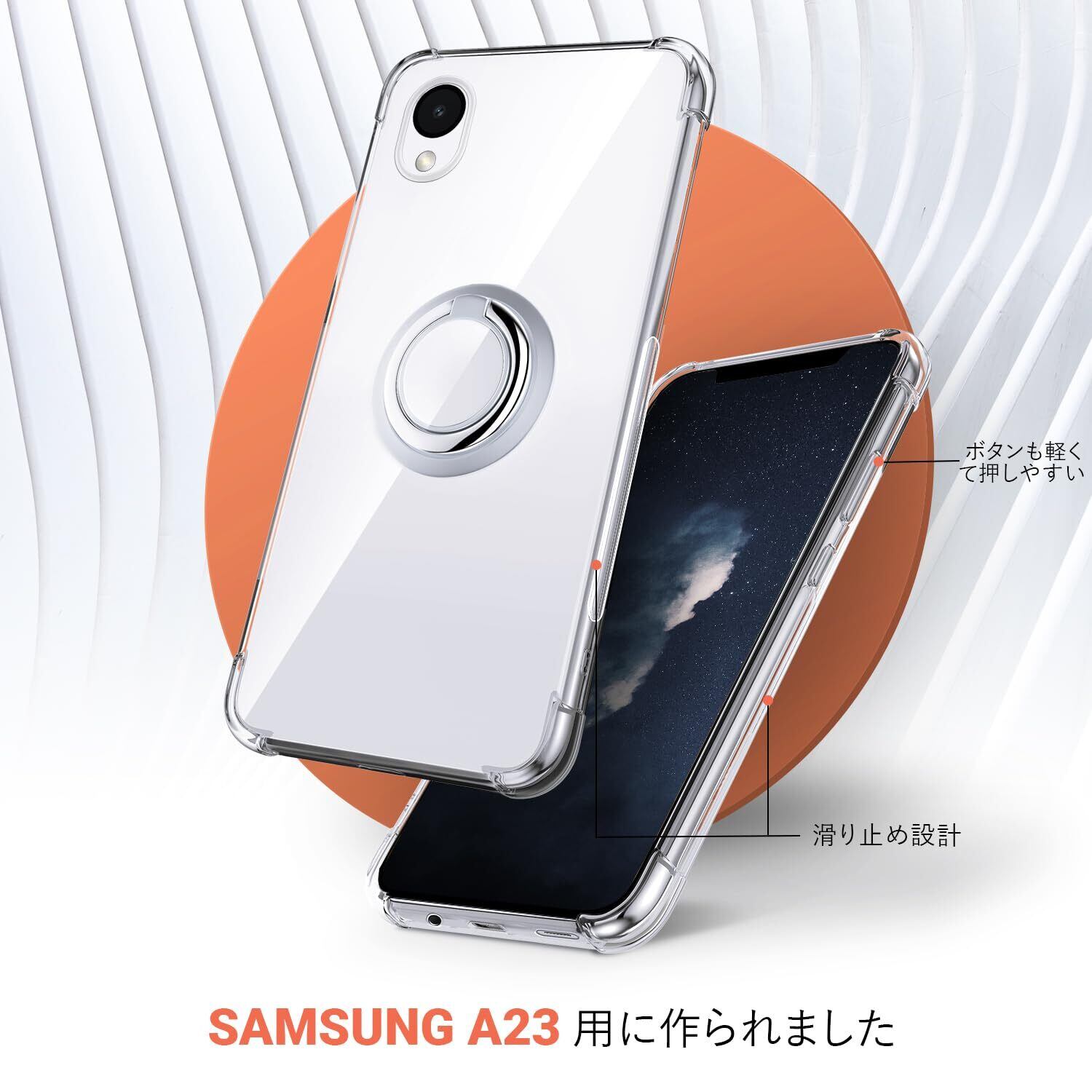 Rockaway Galaxy A23 5G ケース SC-56C SCG18 ケース リング付き クリア すり傷防止 滑り止め スタンド機能 軽量 薄型 耐衝撃 耐久 スマホケース ギャラクシーA23 5G カバー - クリア | hananoki