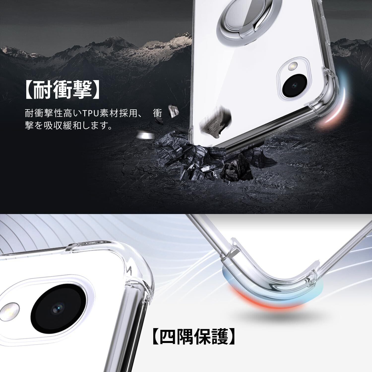 【耐衝撃】ケースの四隅にはエアクッション設計が採用されており、落下時の衝撃を最小限に抑え、傷や破損を防ぎます。さらに、エッジ部分をわずかに高く設計することで、カメラレンズとスクリーンが擦り傷から保護されます。