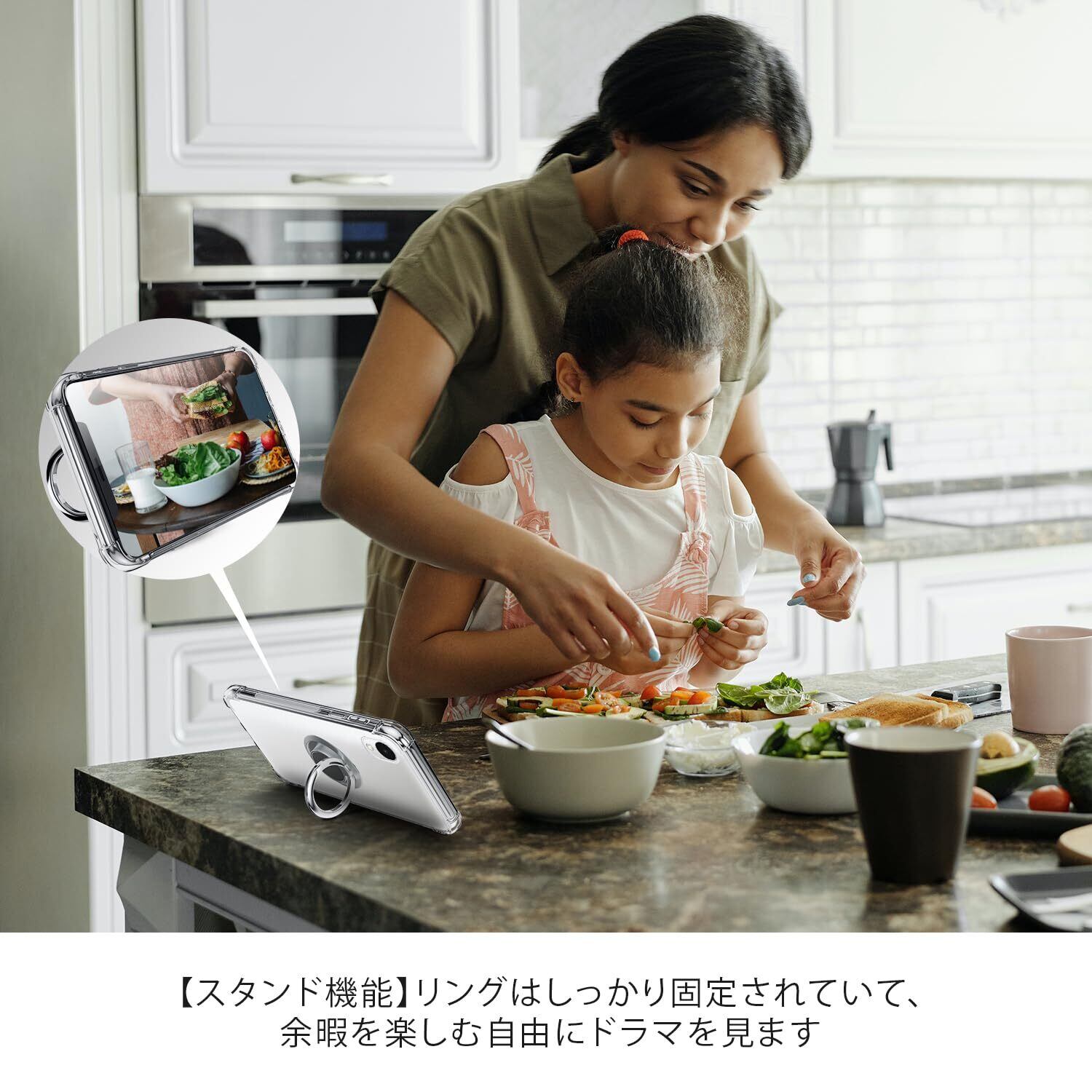 【リング付き&スタンド機能】リングは360度回転可能で、180度の角度調節も可能です。ケースを横置きにするとスタンド機能になり、持たずに動画鑑賞などを楽しむことができます。指をリングに通して一本指で持つことで、片手で携帯電話を操作でき、落下を防止します。