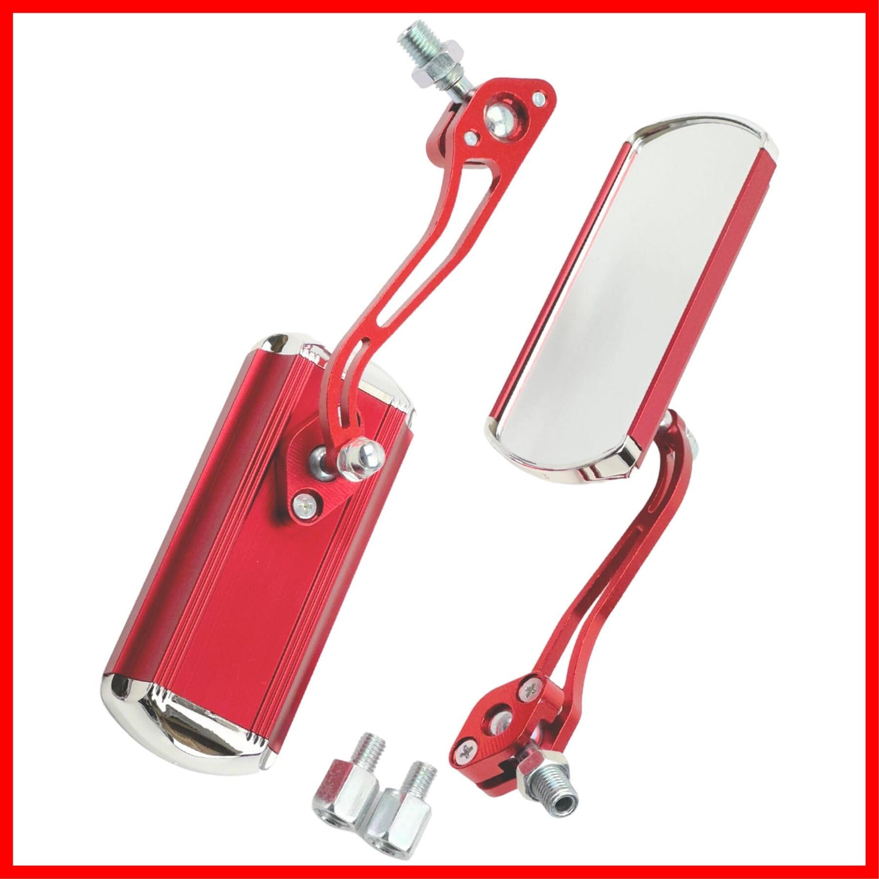 HTharros バイク ミラー 左右セット アルミ 正ネジ10mm アダプター8mm レッド 汎用 社外品 RDS