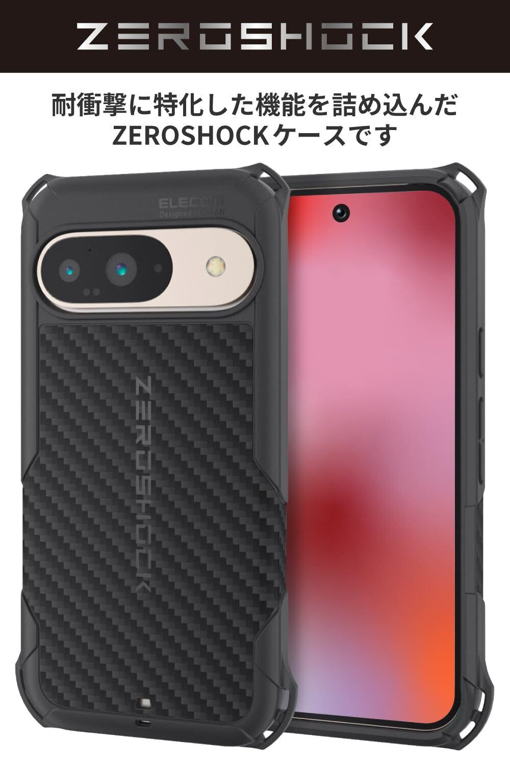 エレコム Google Pixel 9 / 9 pro ケース カバー 耐衝撃 衝撃吸収 ZEROSHOCK 4つ角ダンパー ハイブリッド TPU ハニカム構造 グリップテクスチャー ストラップホール付き カメラ保護 ワイヤレス充電 対応 エアークッション ブラック PMWP242ZEROGBK