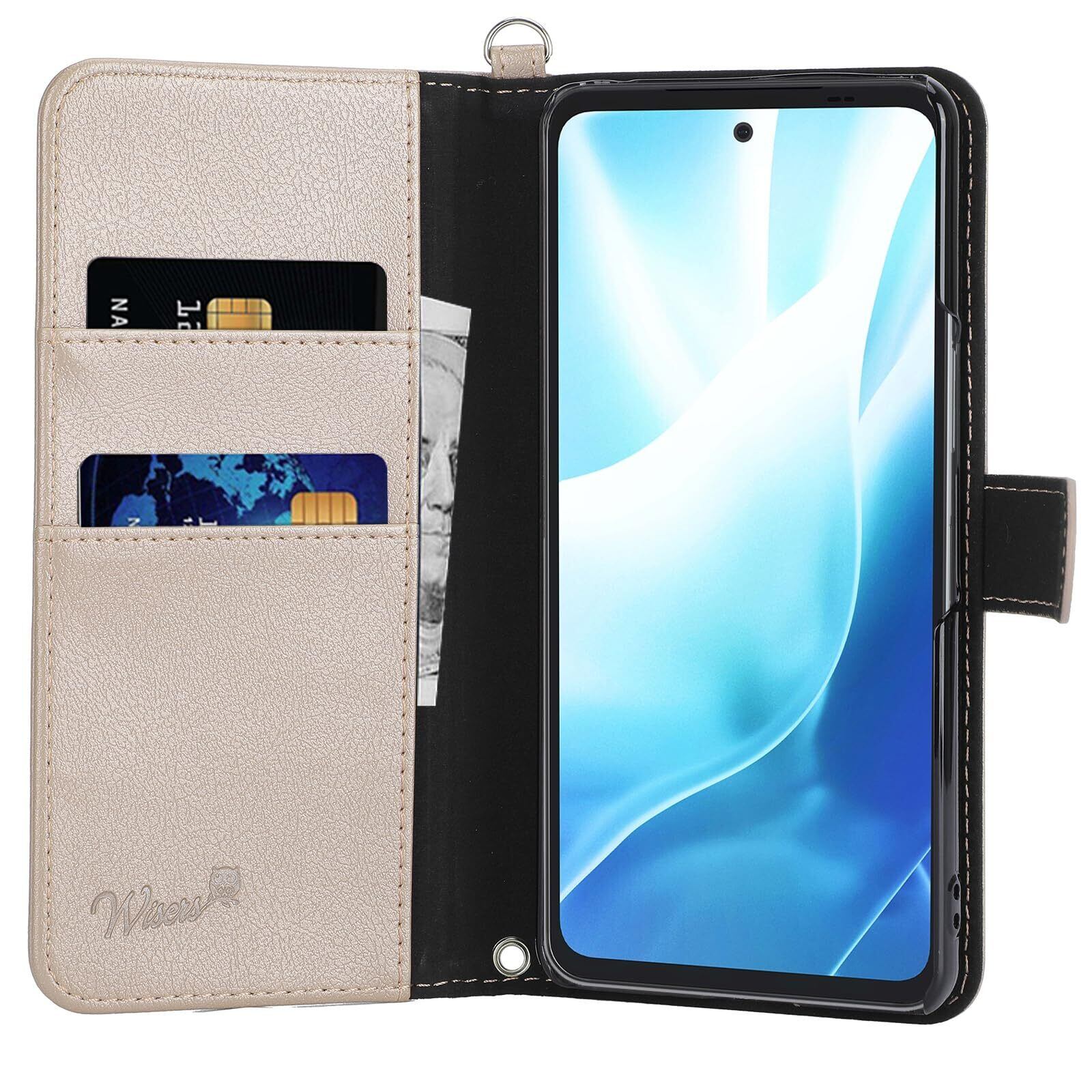 wisers arrows We2 Plus F-51E M06 ケース 手帳型 スマホケース 対応 (ゴールド) ストラップ 2種付き (ハンドストラップ/ネックストラップ) 2024年 新型 | hananoki