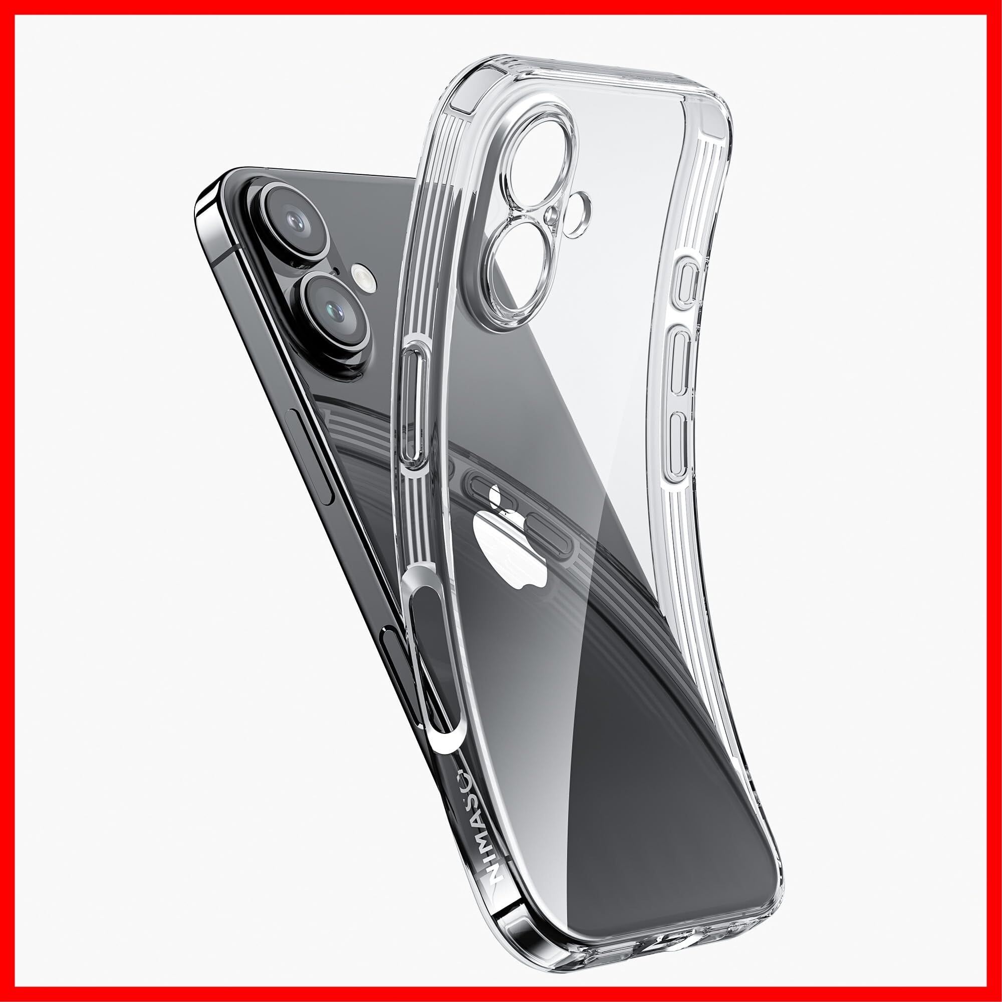 NIMASO iPhone 16 用 ケース クリア ケース 透明 ソフト スマホケース TPU素材 薄型 カバー 米軍MIL規格 衝撃吸収 カメラ レンズ保護 黄ばみにくい いphone 16 ケース ワイヤレス充電対応(清水シリーズ)