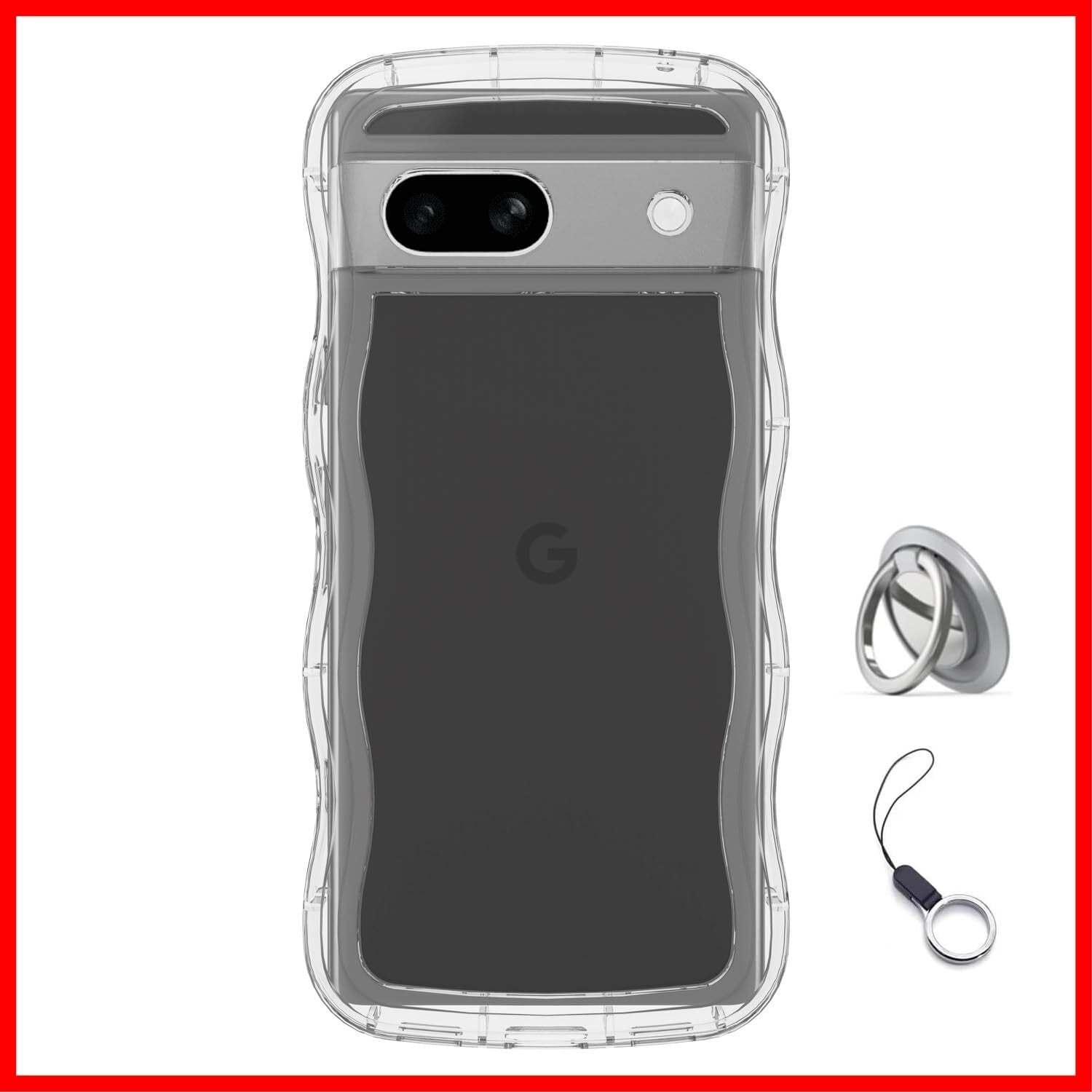 Google Pixel 6a用ケースクリア リング付き グーグルピクセル 6Aウェーブ 純透明 マグセフ 可愛い [シルバーリングスタンド付き!]マツと感 TPU 耐衝撃 超軽量 極薄 透明 黄ばみなし 滑り止め かわいいうねうね 韓国 人気 ストラップホール付きなみなみ カバー・ピクセル 6Aクリア | hananoki