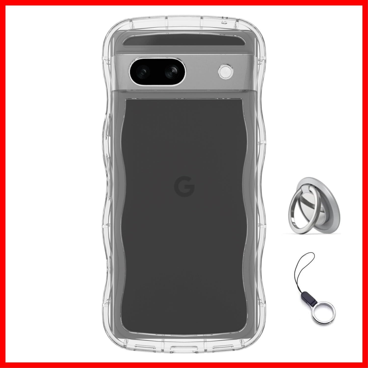 Google Pixel 6a用ケースクリア リング付き グーグルピクセル 6Aウェーブ 純透明 マグセフ 可愛い [シルバーリングスタンド付き!]マツと感 TPU 耐衝撃 超軽量 極薄 透明 黄ばみなし 滑り止め かわいいうねうね 韓国 人気 ストラップホール付きなみなみ カバー・ピクセル 6Aクリア